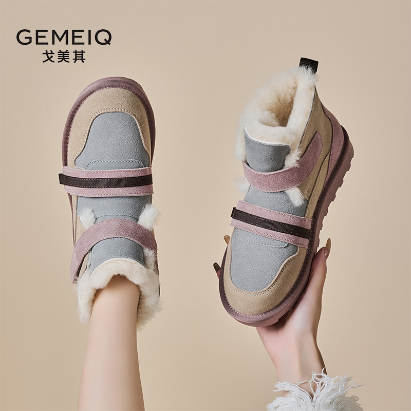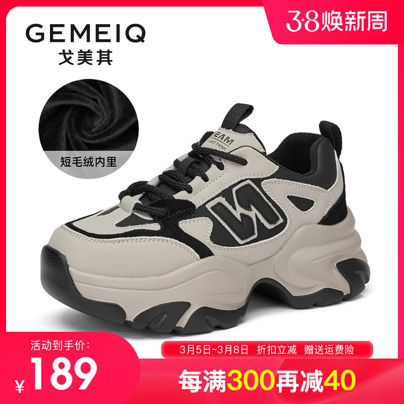戈美其老爹鞋女款2023冬季新款爆款加绒厚底小个子增高炸街休闲鞋