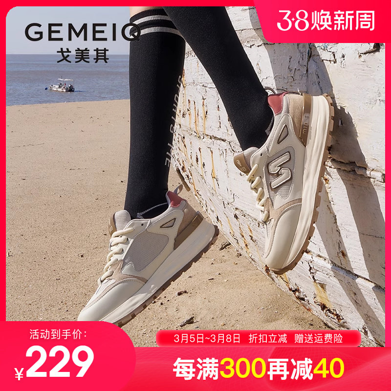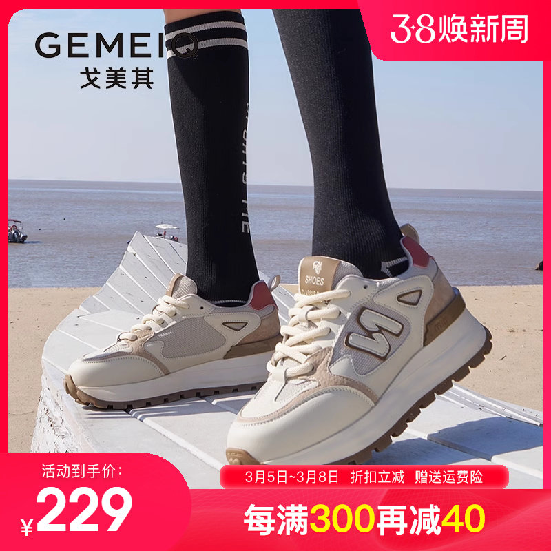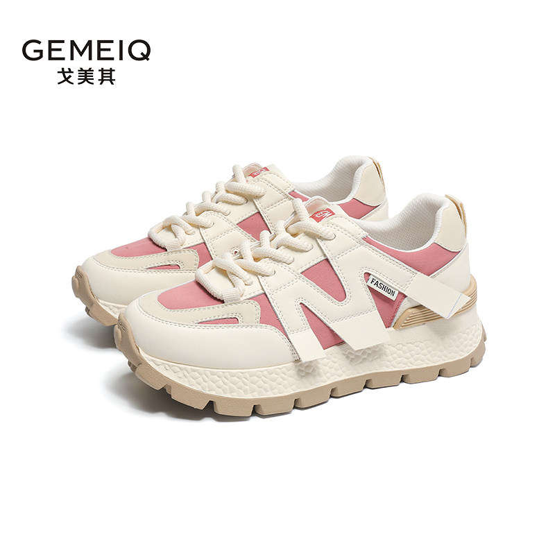 戈美其2024春季新款厚底增高老爹鞋女圆头复古百搭拼色休闲运动鞋