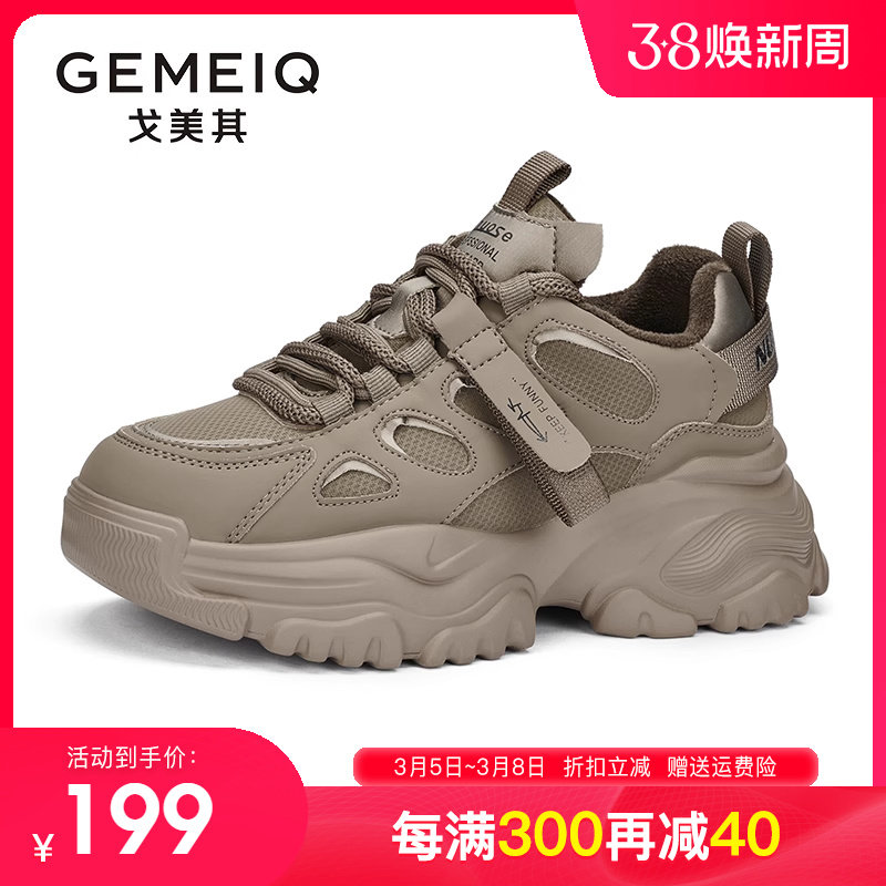 戈美其鞋子女2023新款厚底增高加绒爆款老爹鞋女秋冬休闲运动女鞋