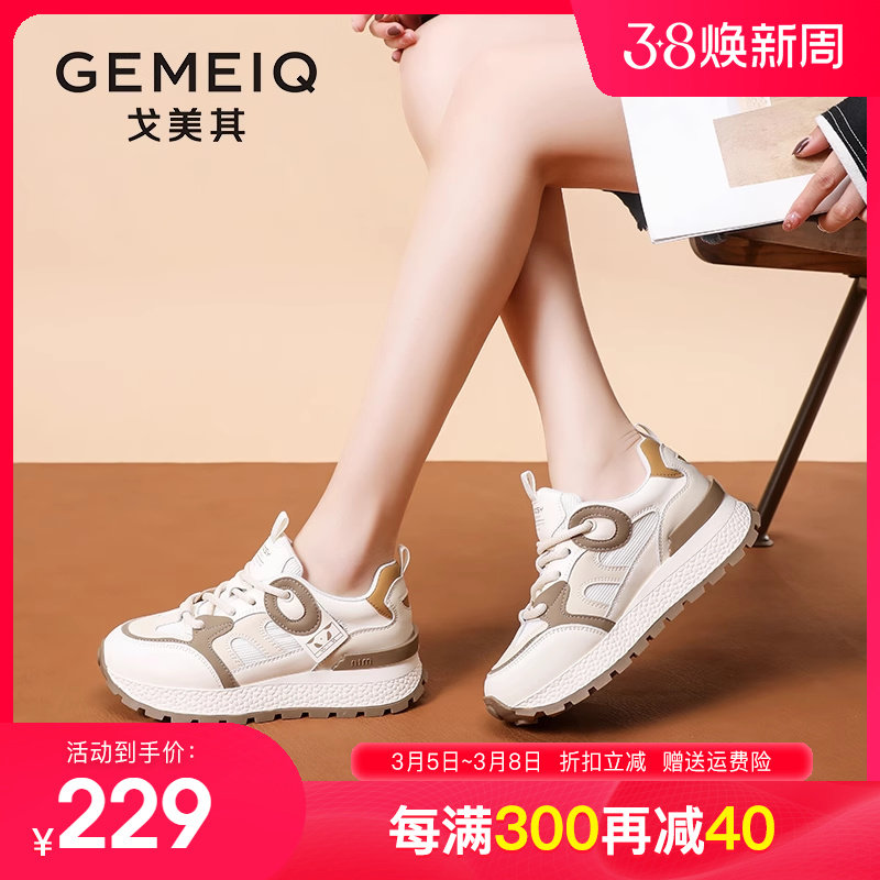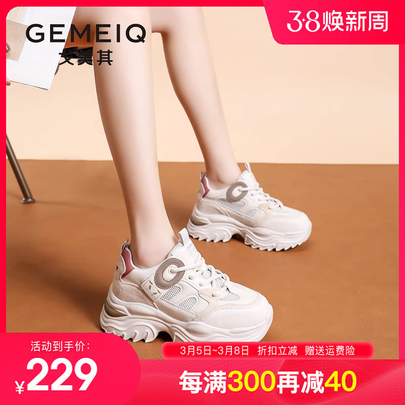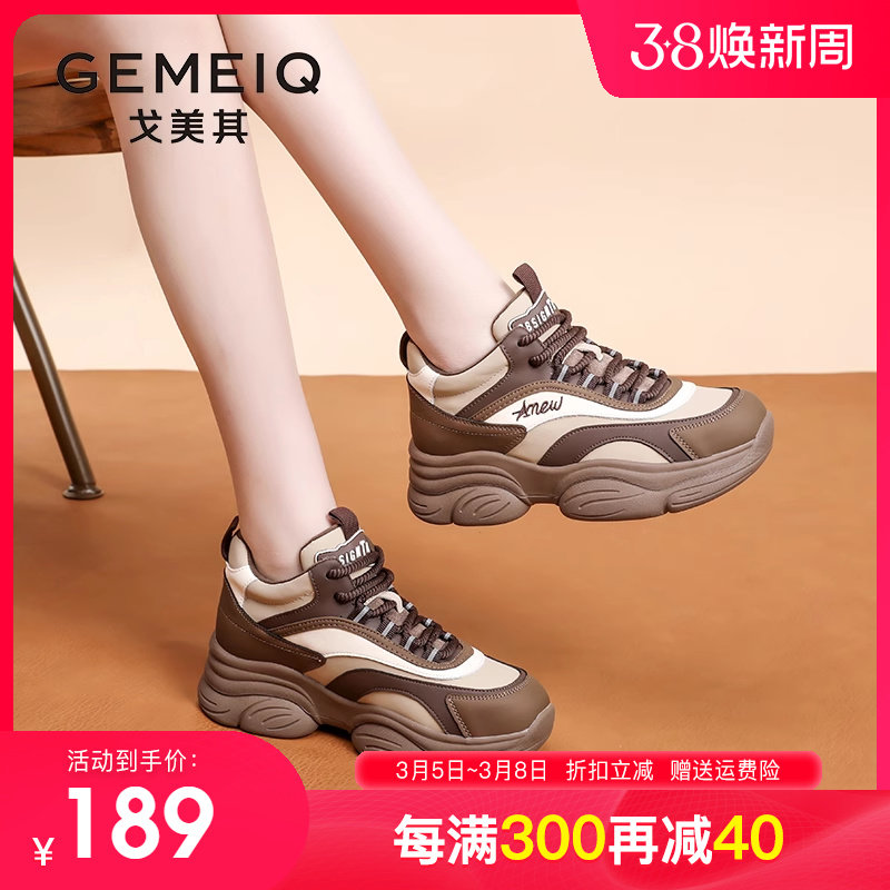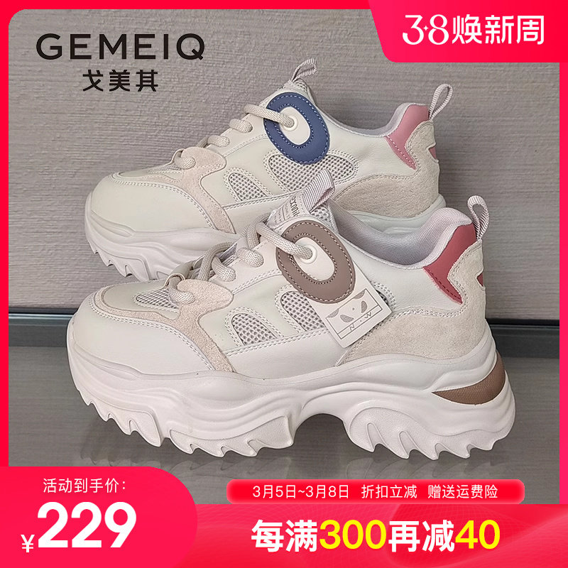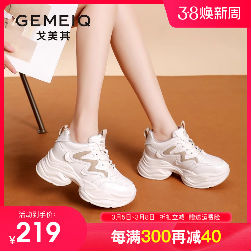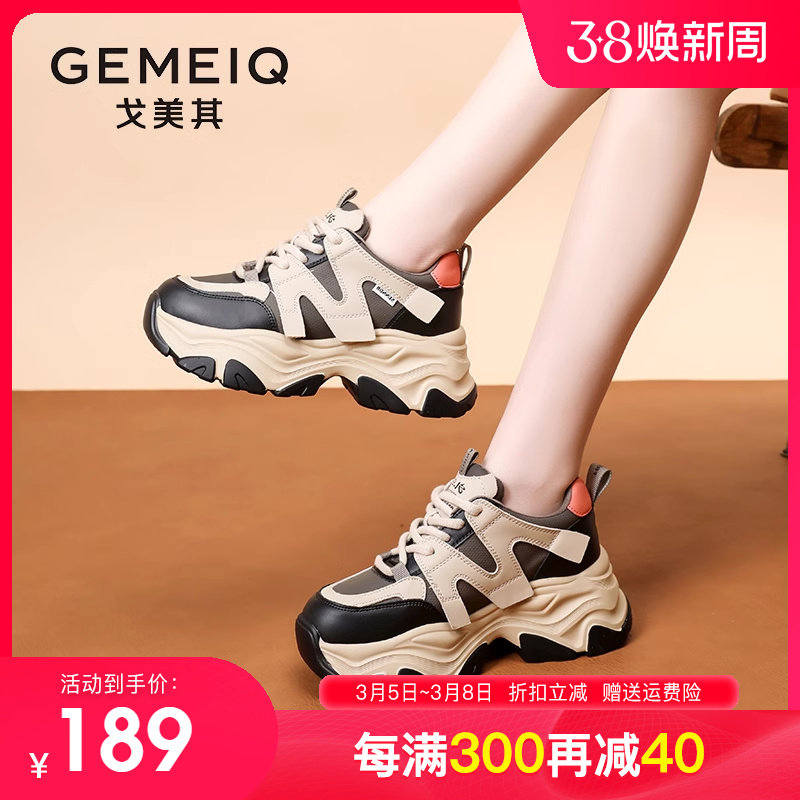 戈美其老爹鞋女2024春季新款女鞋百搭女款爆款厚底增高真皮运动鞋