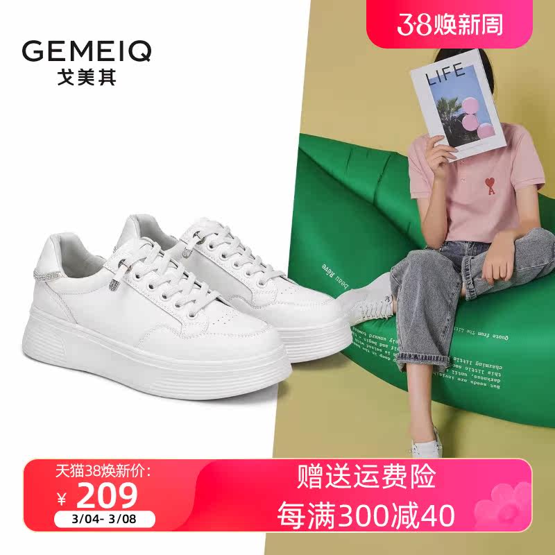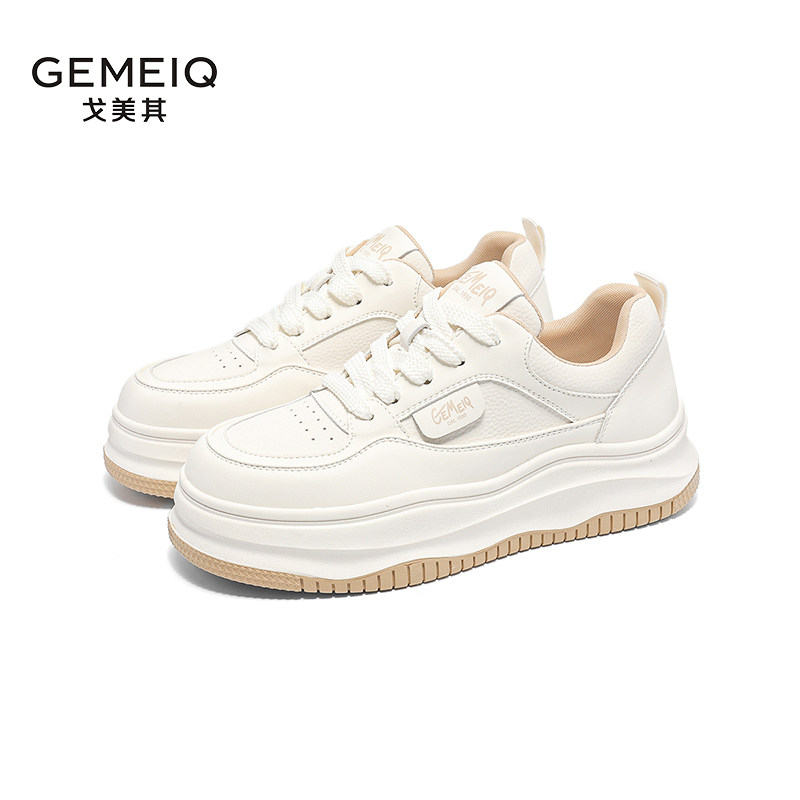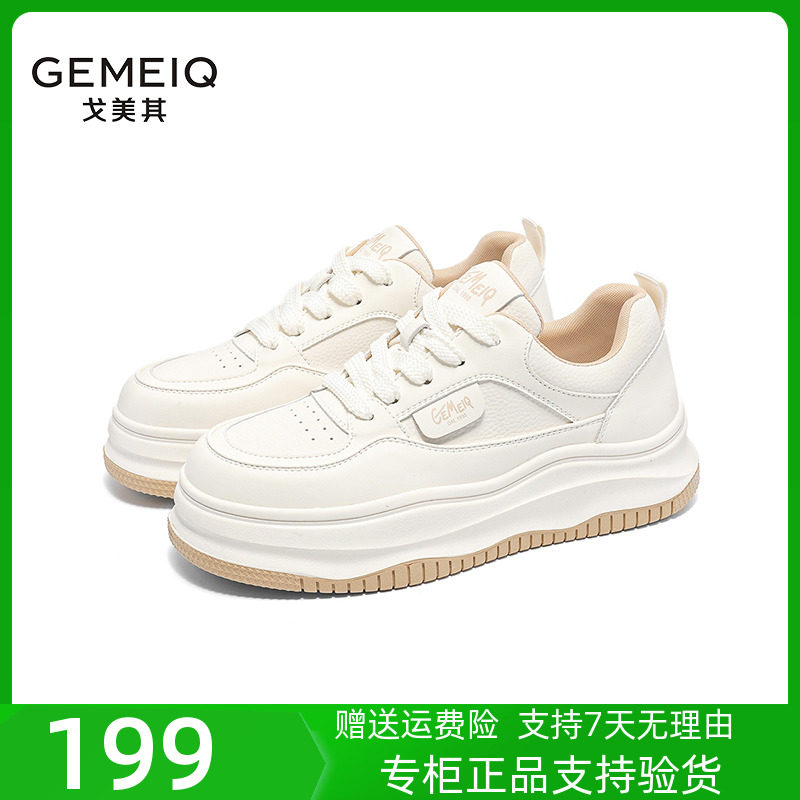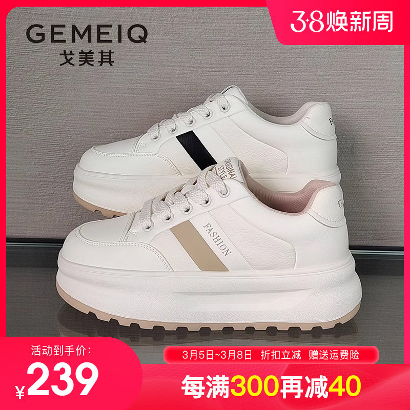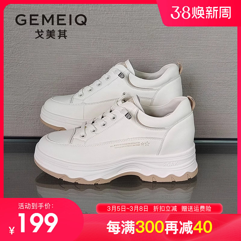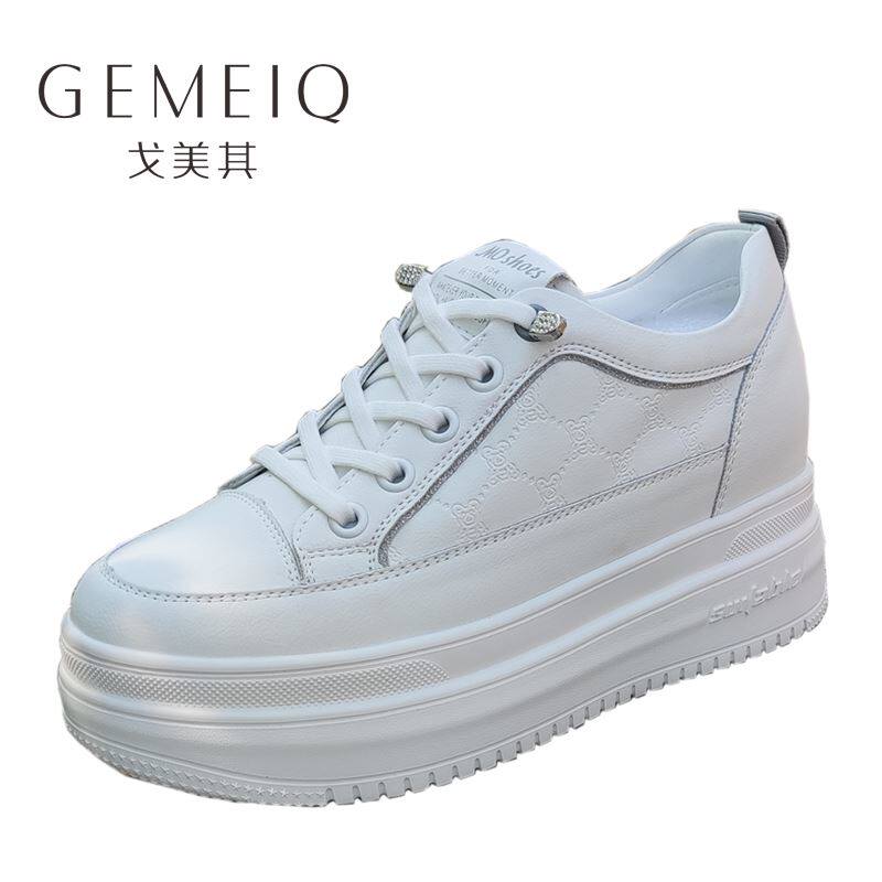 春新款女鞋戈美其真皮厚底小白鞋女轻便增高单鞋休闲运动板鞋