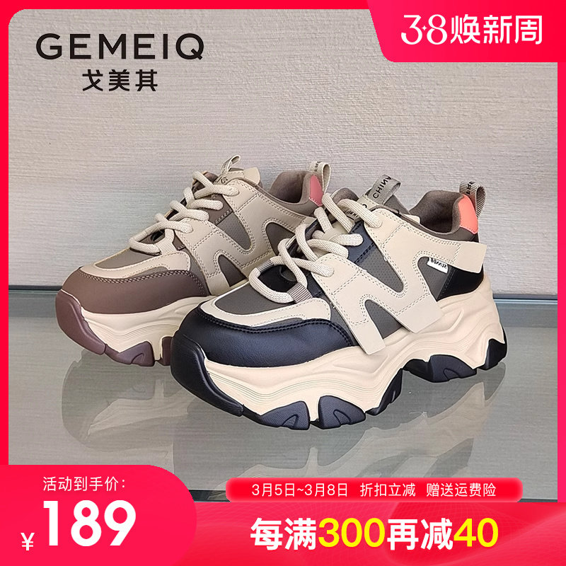 戈美其爆款老爹鞋女2023秋冬季新款厚底休闲百搭运动鞋显脚小增高
