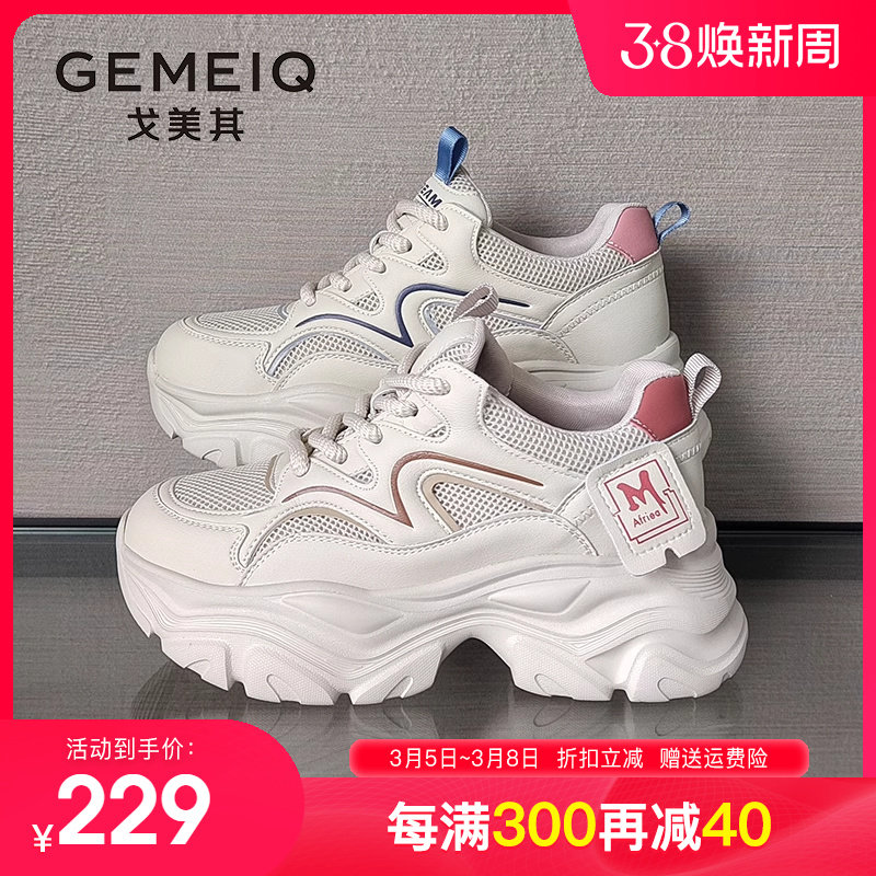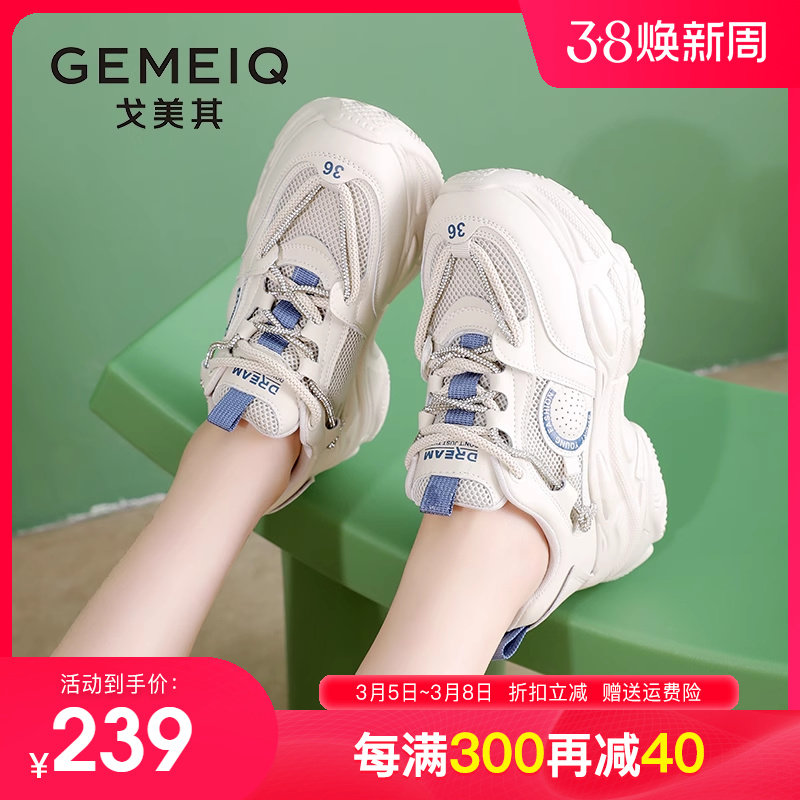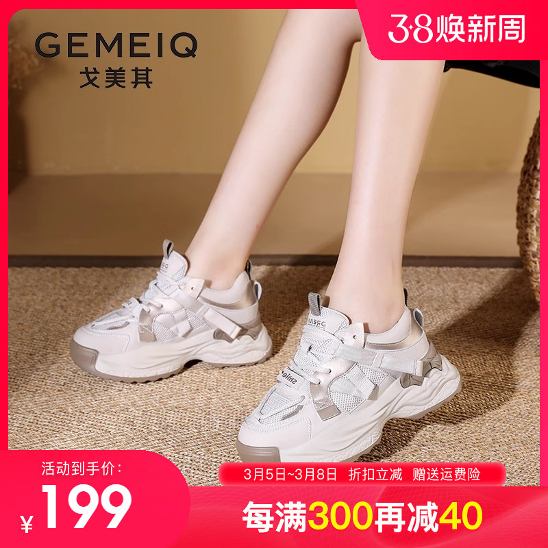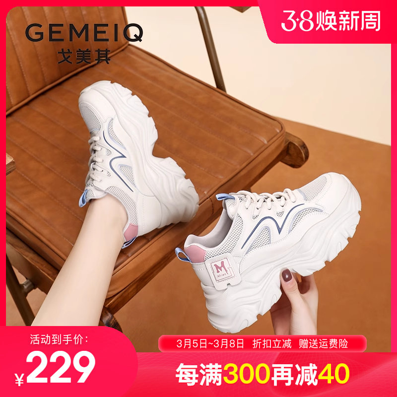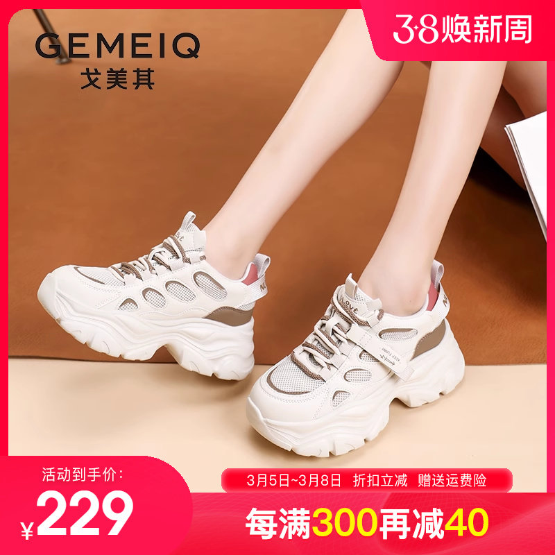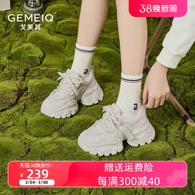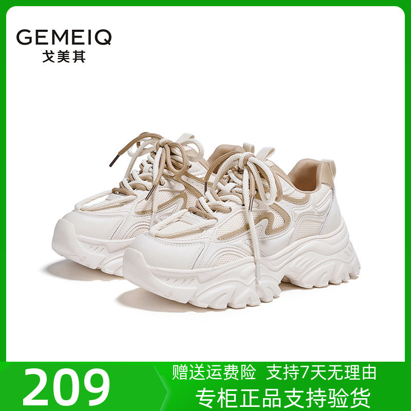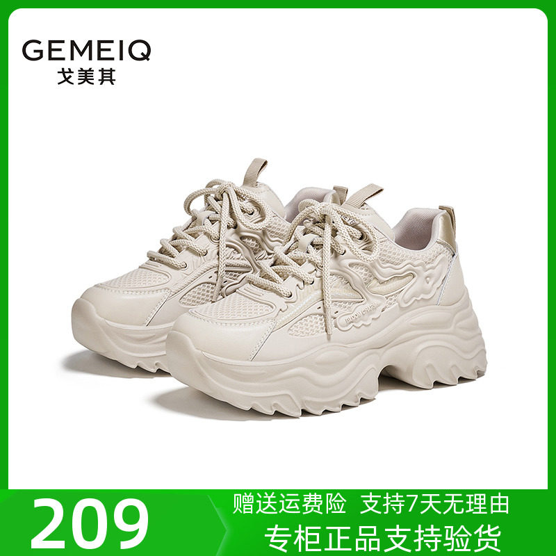 戈美其女鞋2023秋季新款厚底休闲运动鞋网面学生爆款增高老爹鞋女