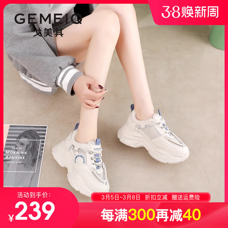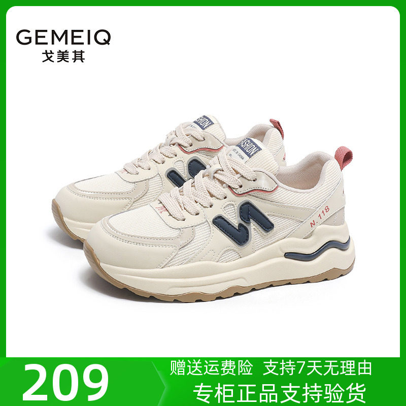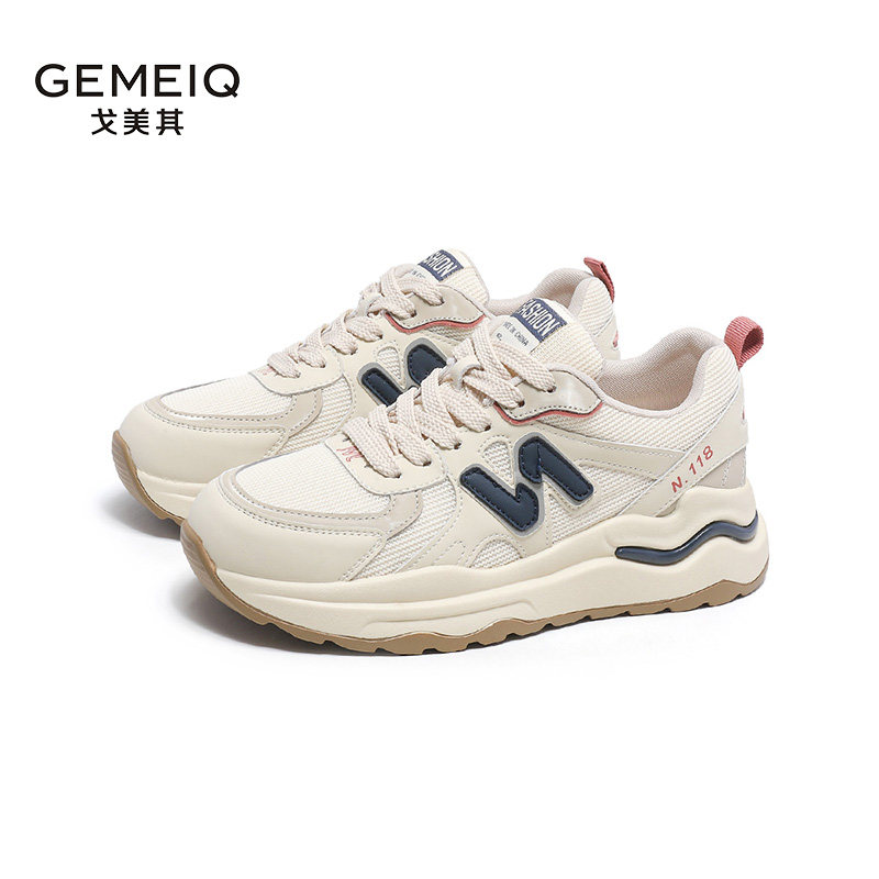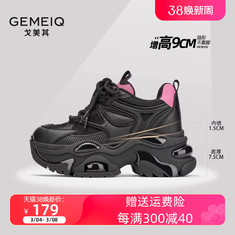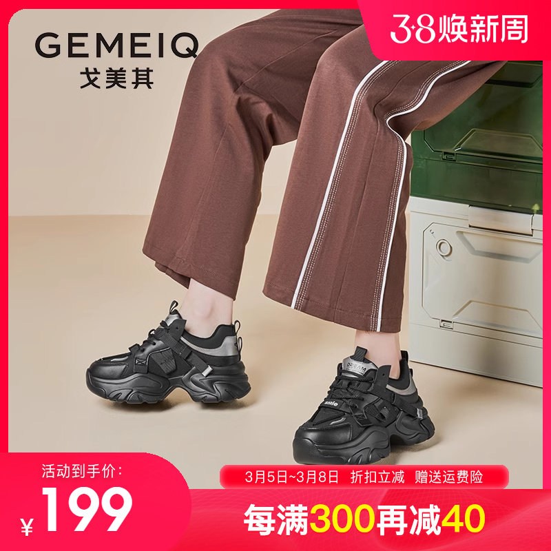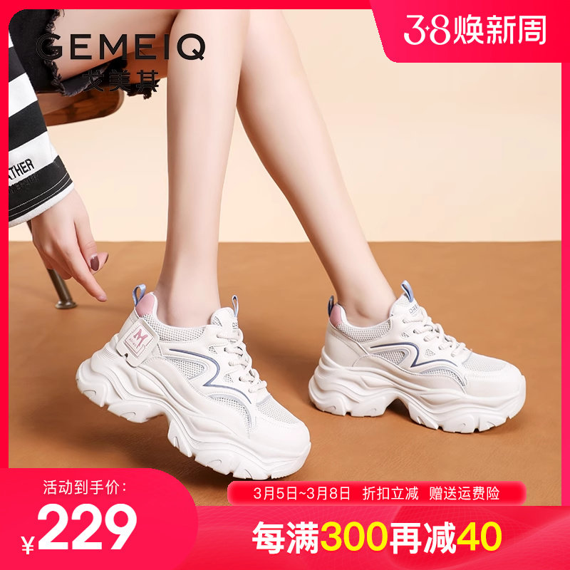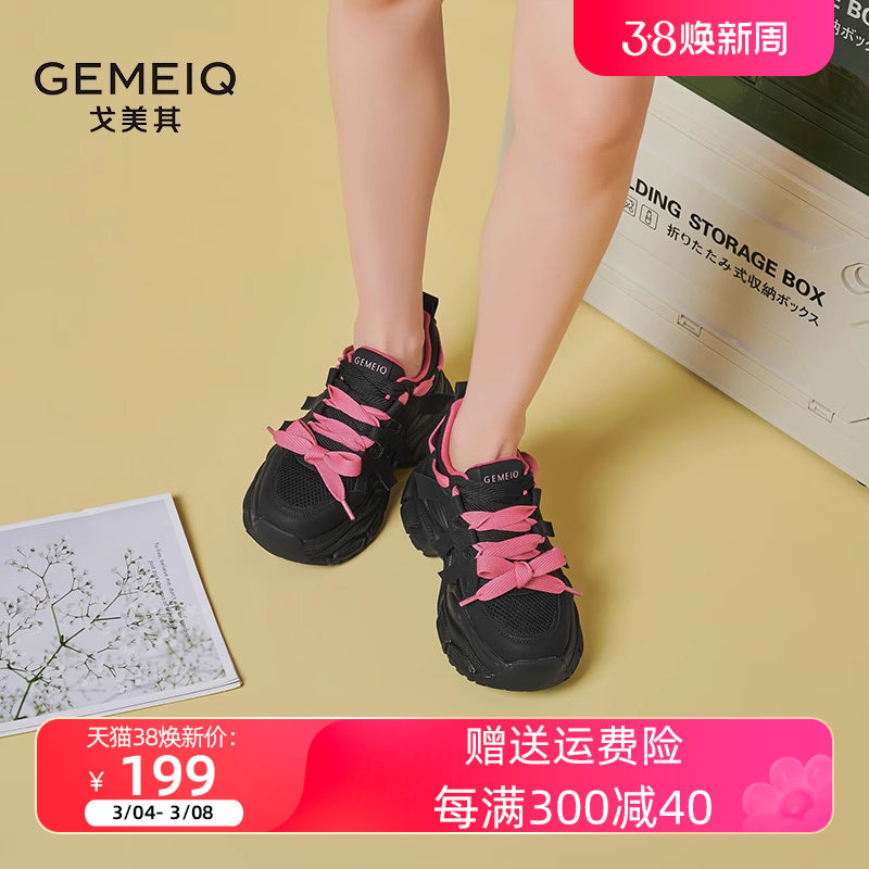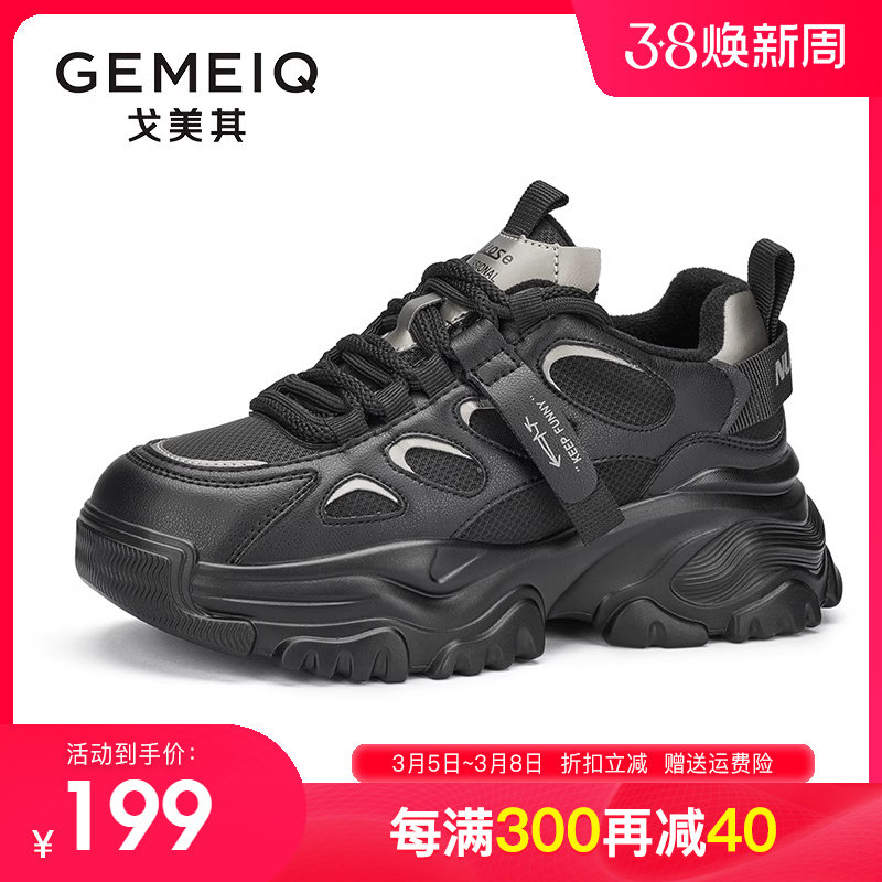 戈美其女鞋2023秋季新款厚底休闲运动鞋网面学生爆款增高老爹鞋女