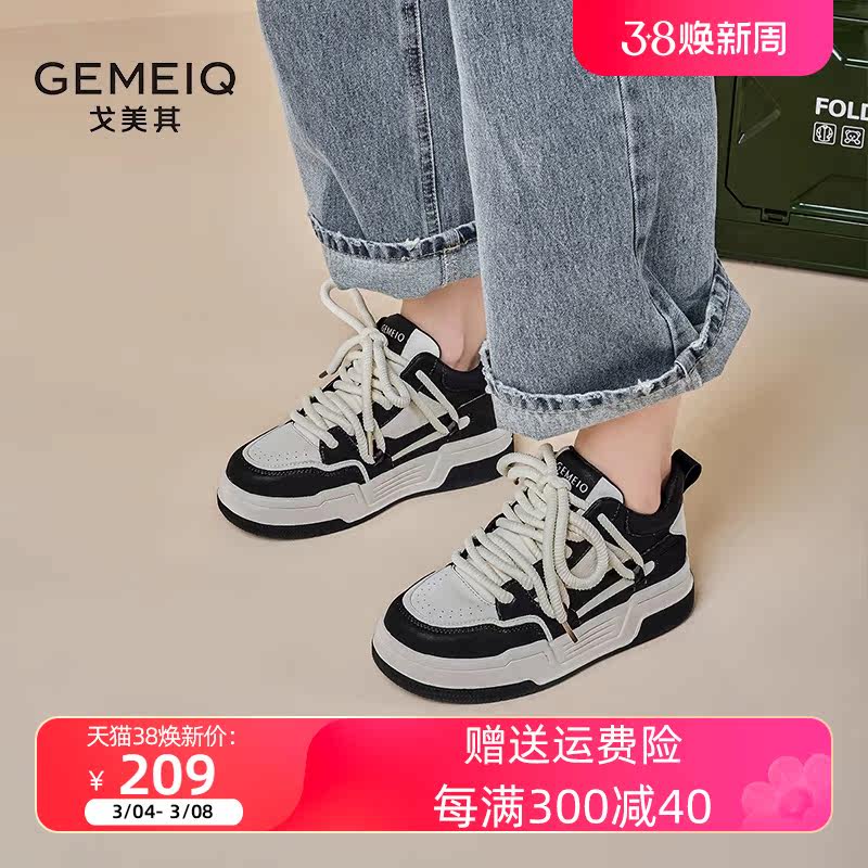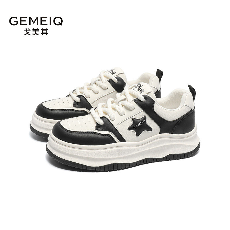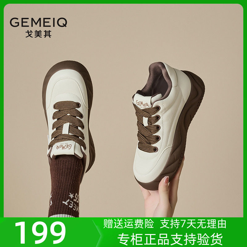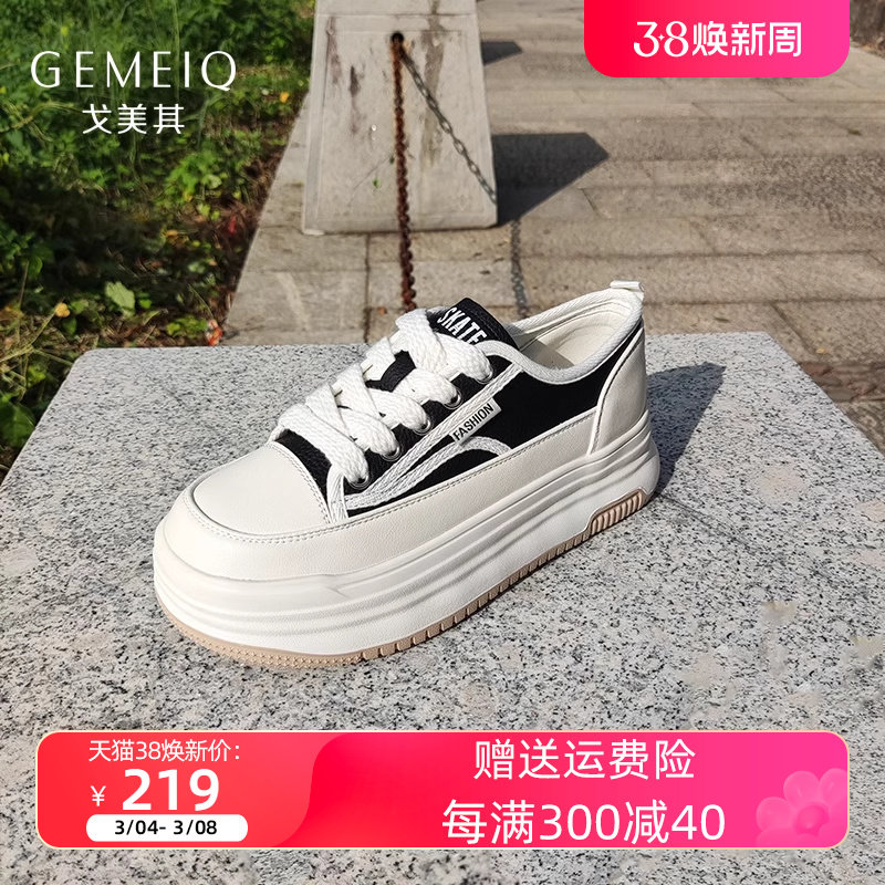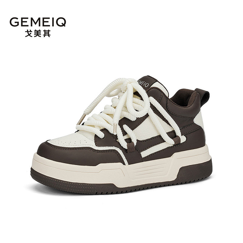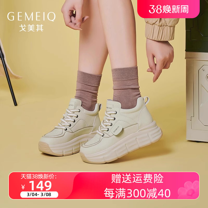 戈美其厚底系带板鞋女2023冬季新款百搭运动休闲鞋增高舒适小白鞋