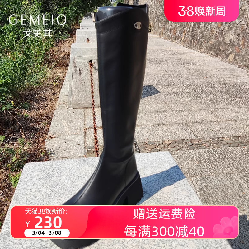 戈美其2023秋冬女鞋松糕厚底不过膝增高长筒靴保暖显脚小高筒靴