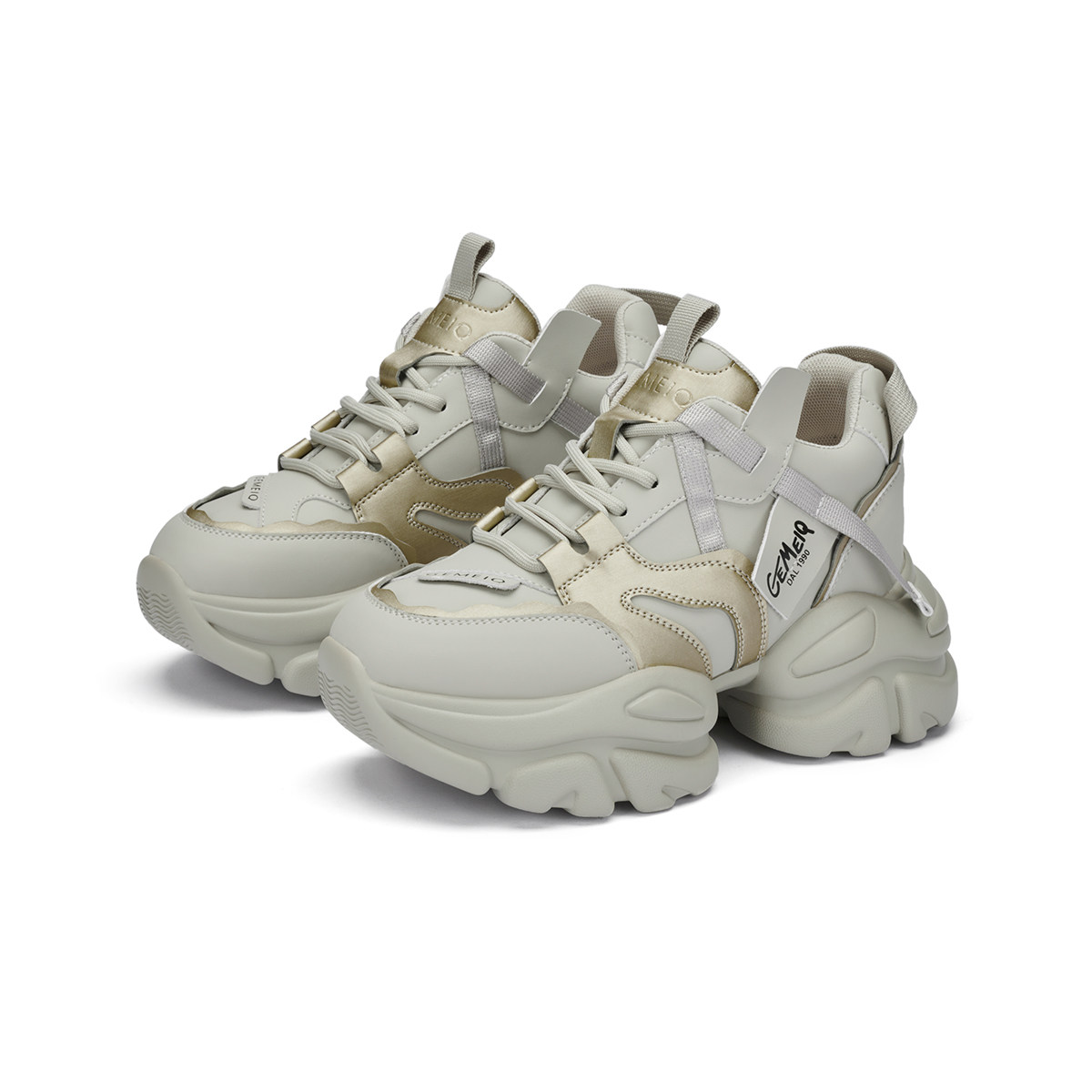 戈美其真皮厚底老爹鞋女款春春夏增高休闲运动鞋飘带ins潮女鞋