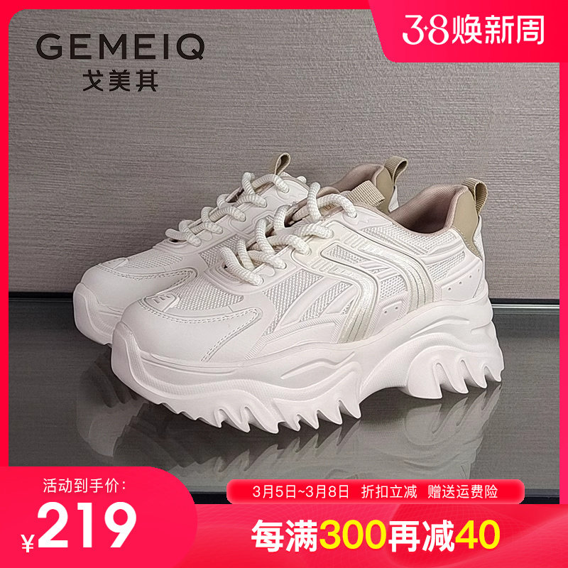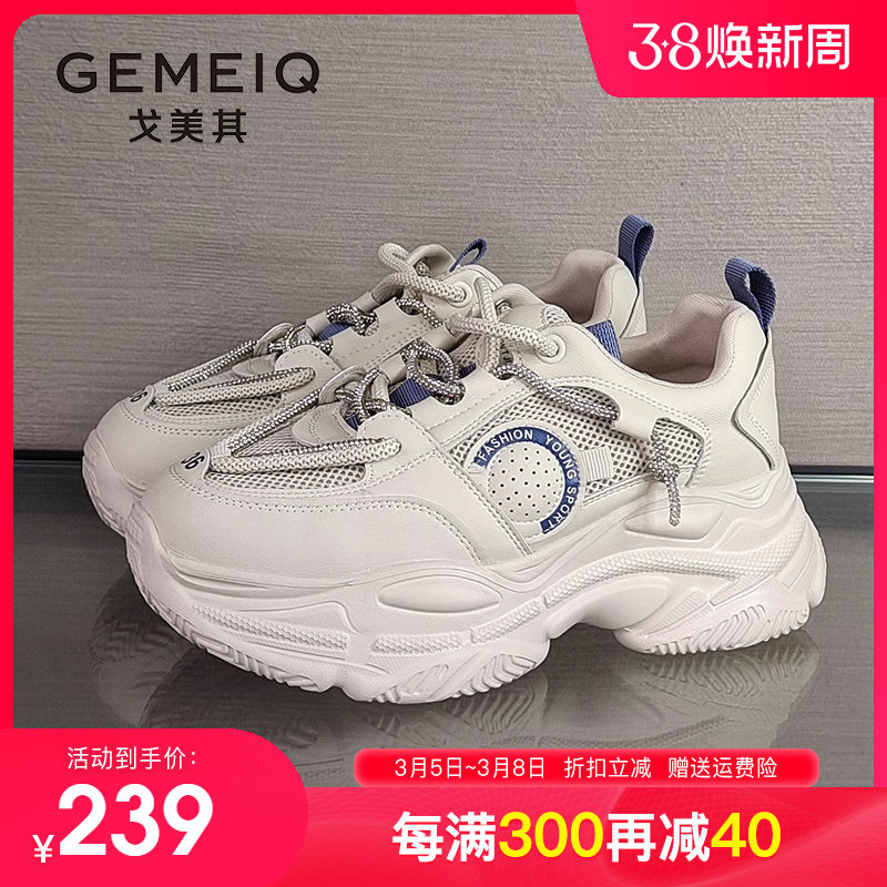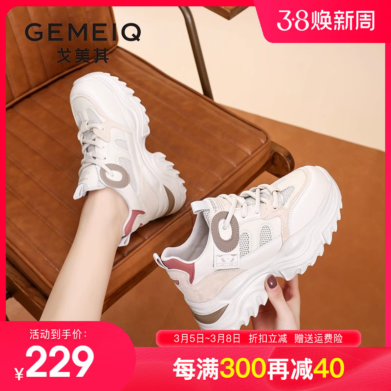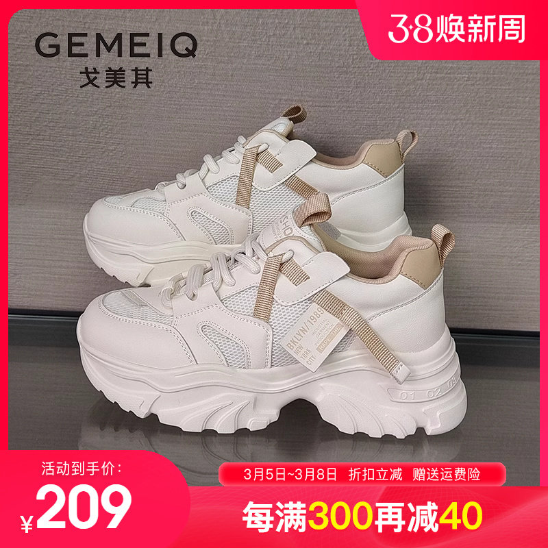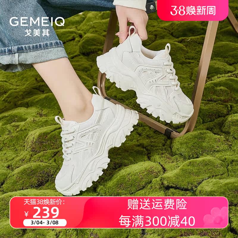 戈美其老爹鞋女鞋2023秋冬百搭显脚小厚底增高透气小白鞋断码清仓