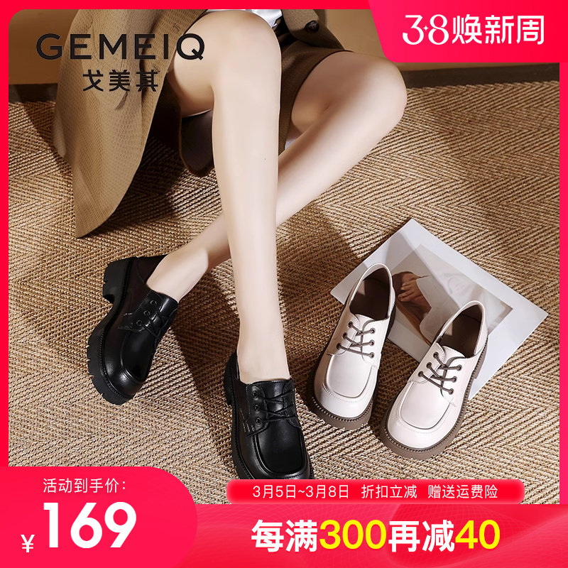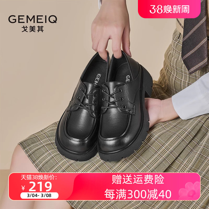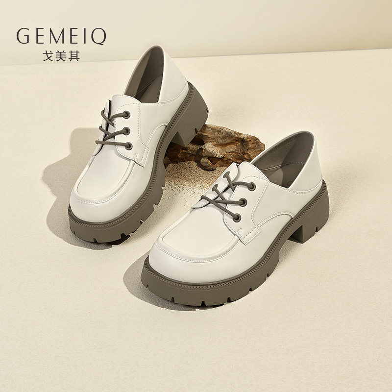 戈美其真皮单鞋小皮鞋系带女2023春季新款英伦学院风厚底增高女鞋