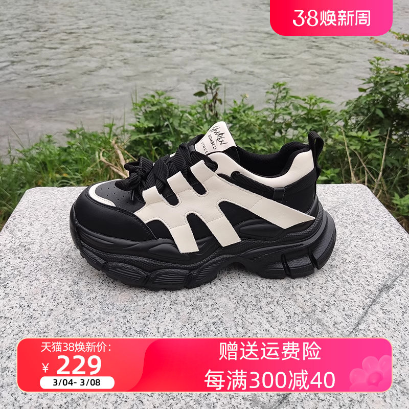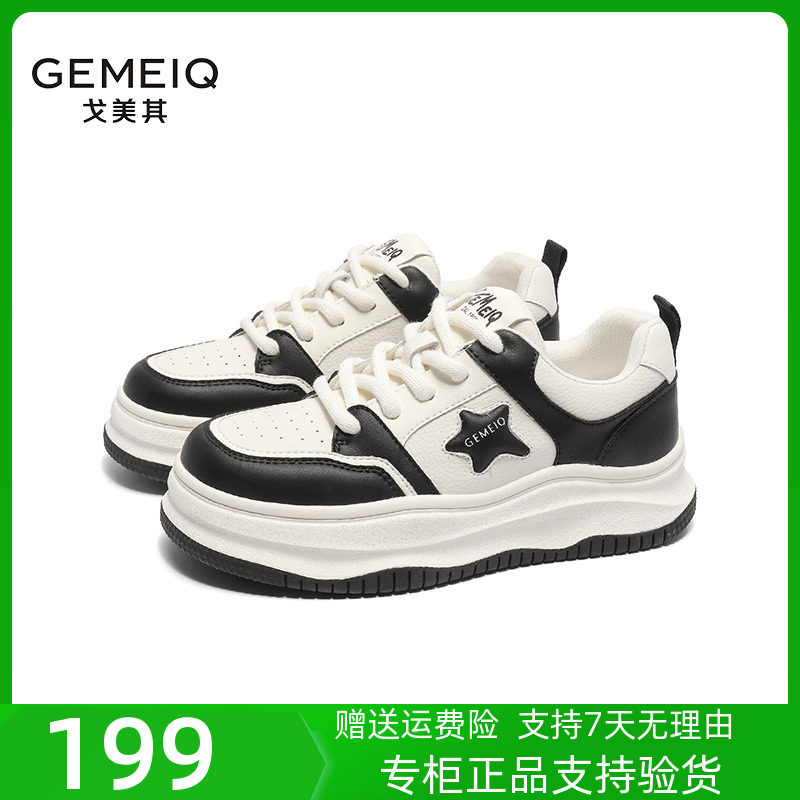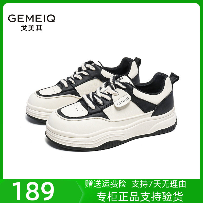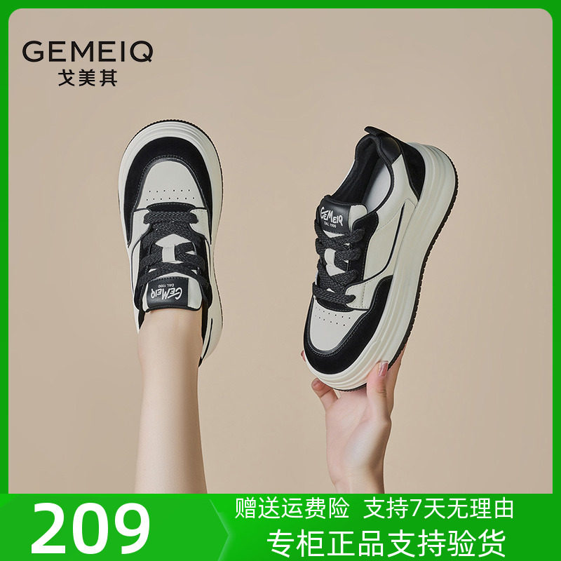 戈美其2023秋松糕厚底运动休闲鞋黑白增高老爹鞋真皮潮流百搭女鞋