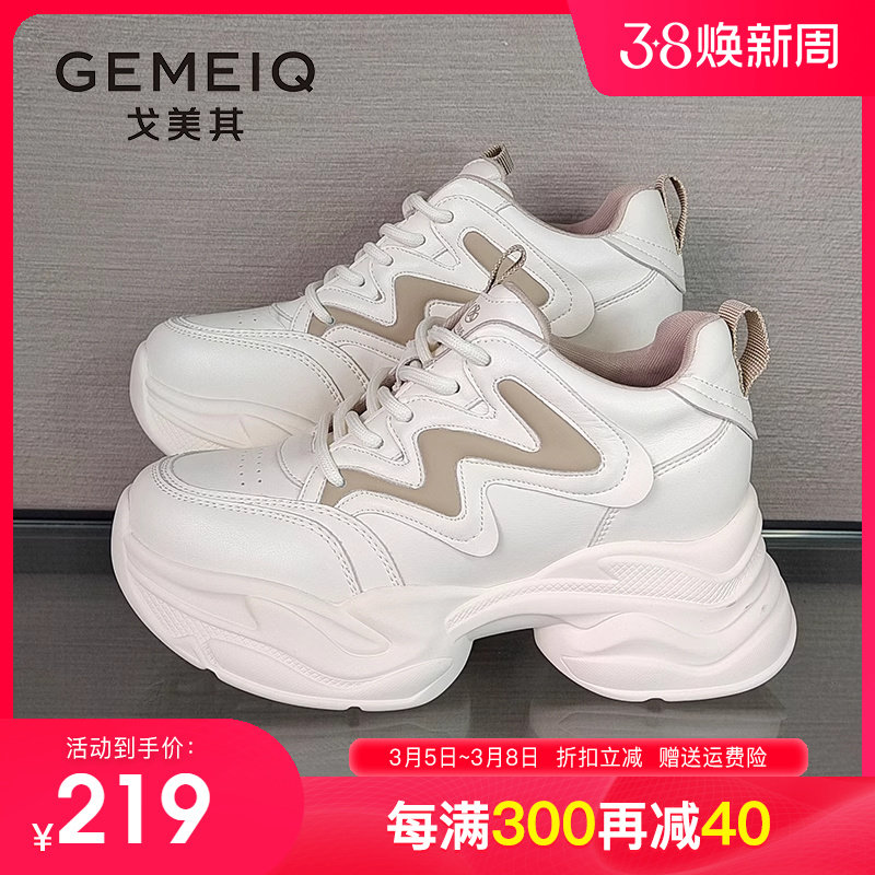 戈美其单鞋春秋新款女鞋运动休闲鞋厚底松糕鞋增高小白鞋面包鞋