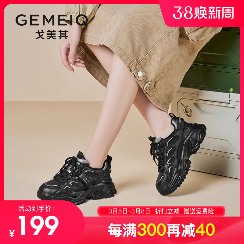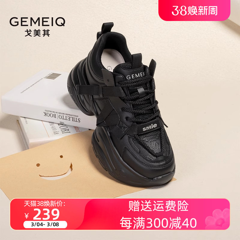 2024春新款戈美其厚底老爹鞋女黑色ins潮休闲增高运动鞋松糕女鞋