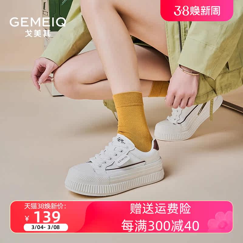 戈美其春新款女鞋松糕厚底增高小白鞋小众设计感休闲运动板鞋单鞋