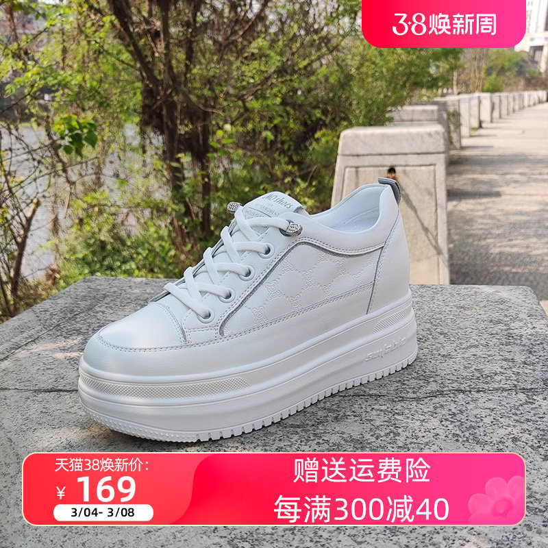 戈美其女鞋2024春季新款厚底内增高休闲运动鞋子女真皮百搭小白鞋