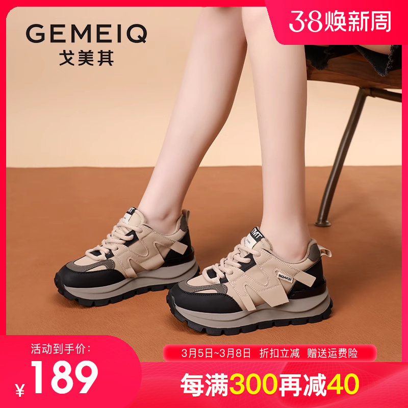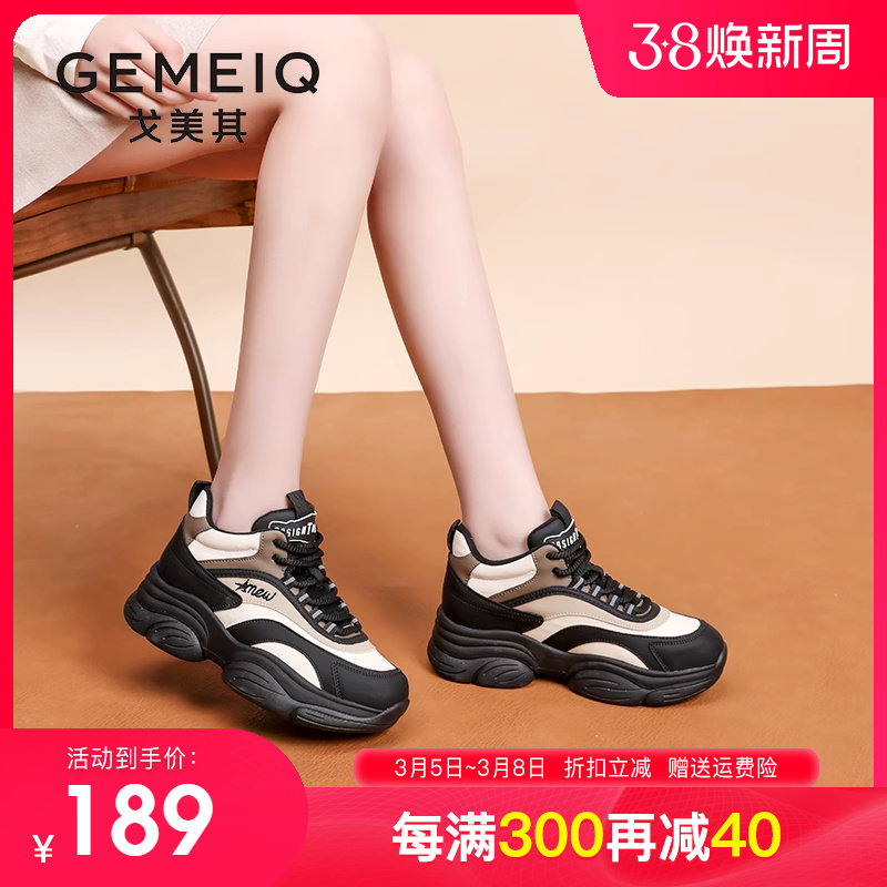 戈美其厚底内增高女鞋2023秋冬季新款休闲运动老爹鞋女显脚小炸街