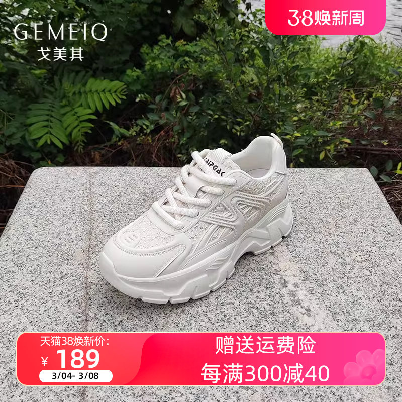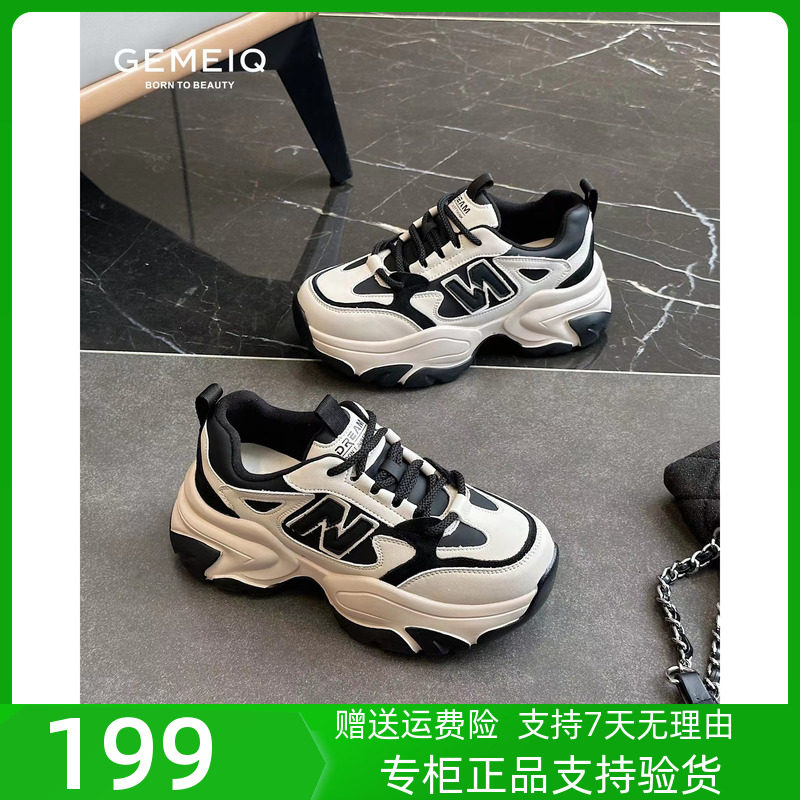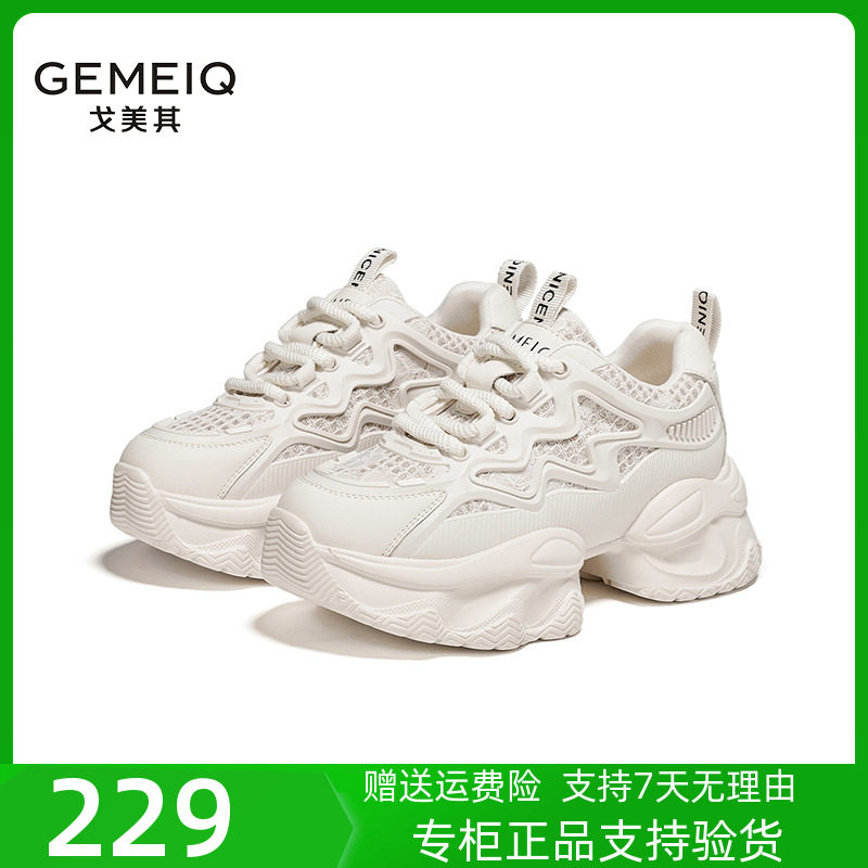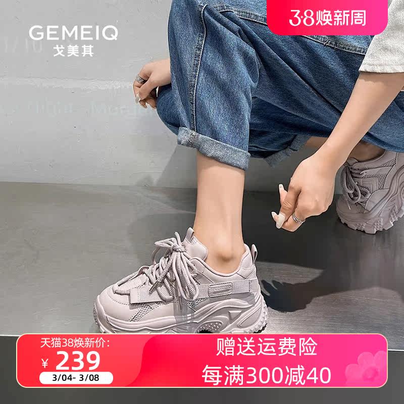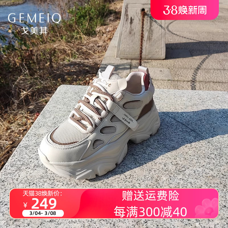 戈美其女鞋子2023秋季新款厚底透气老爹鞋运动休闲鞋轻便跑步鞋