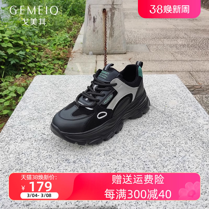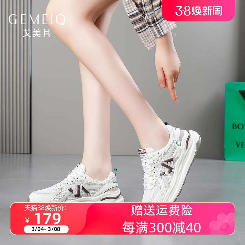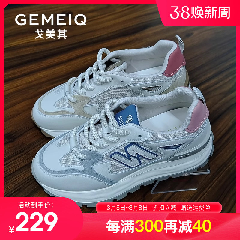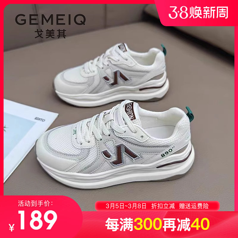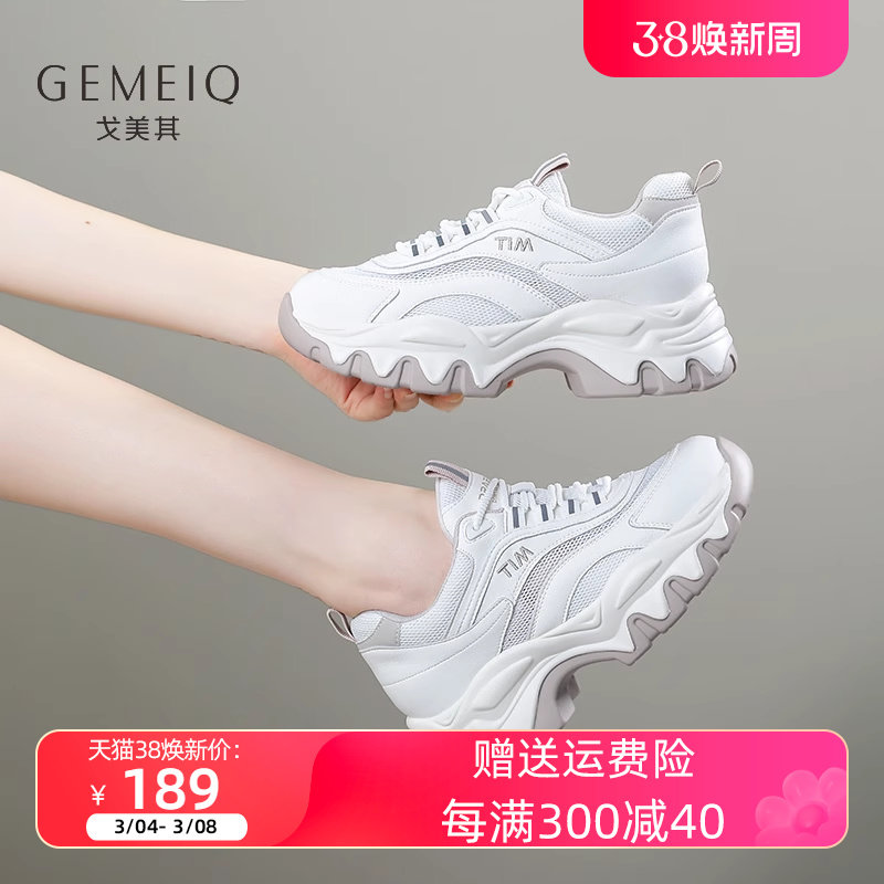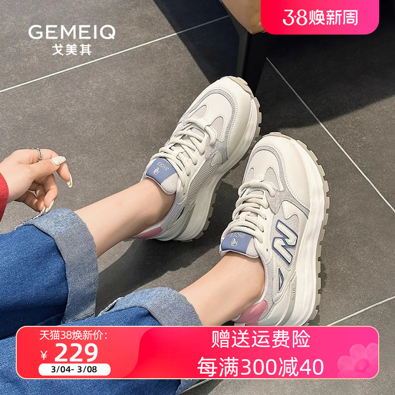 戈美其女鞋子2023秋季新款厚底透气老爹鞋运动休闲鞋轻便跑步鞋