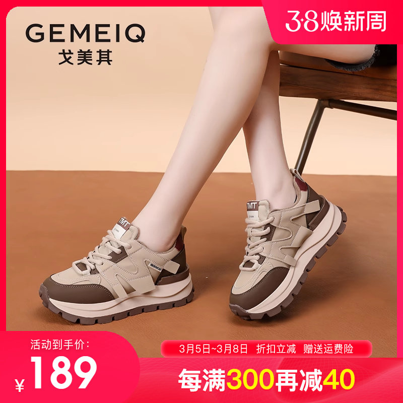 戈美其商场同款2024春季新款真皮运动休闲舒适百搭厚底老爹鞋女鞋