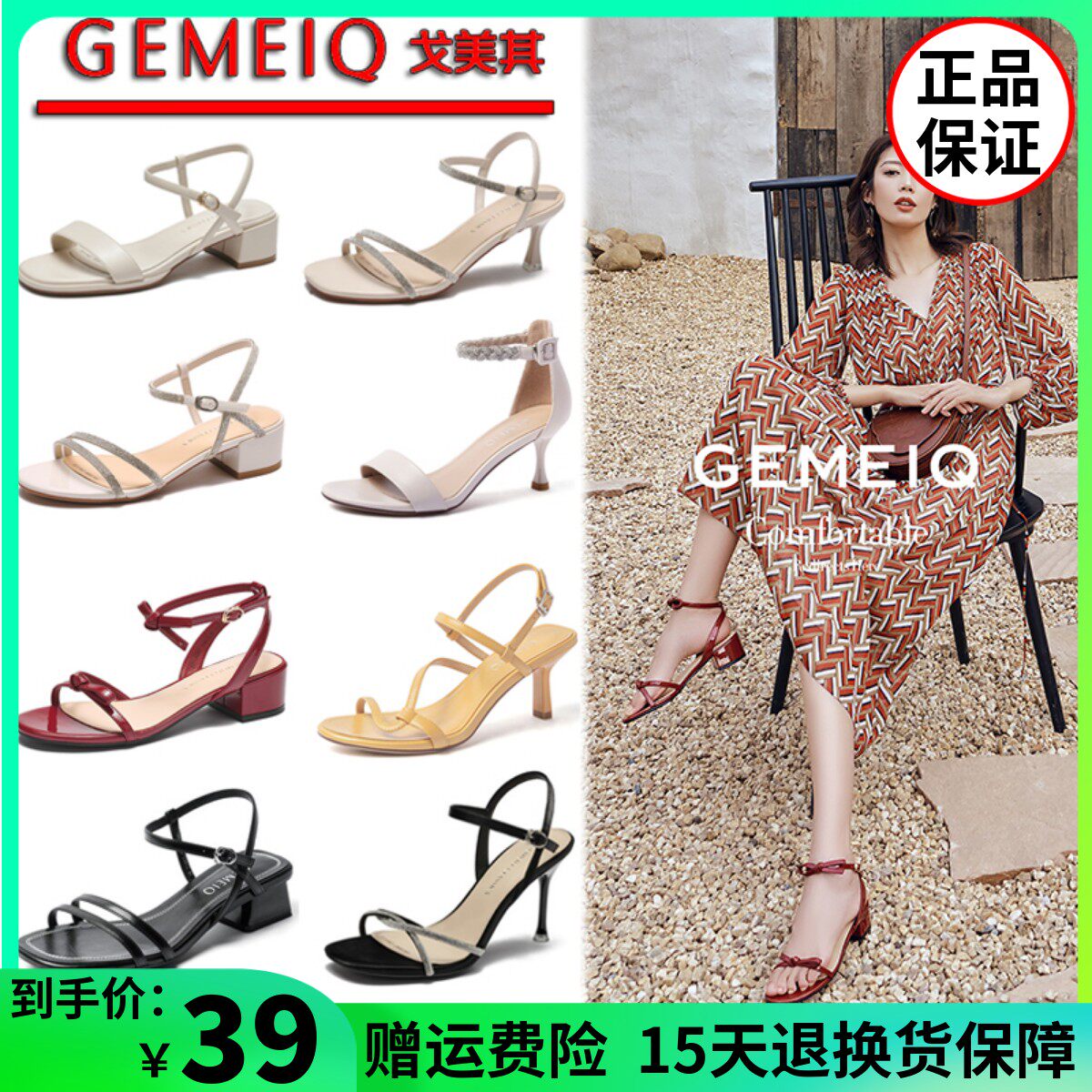 戈美其女鞋夏时装凉鞋2023年新款百搭一字带中跟粗跟高跟断码清仓