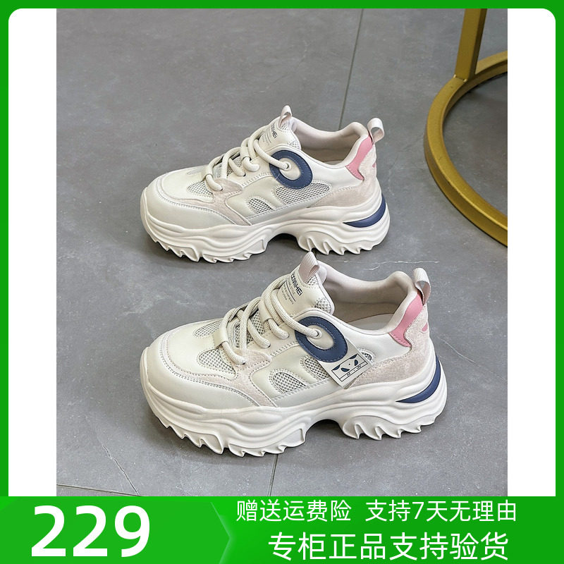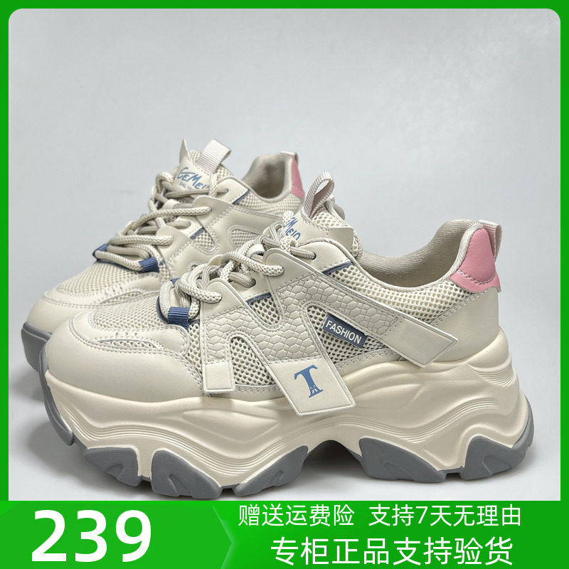 戈美其春秋新款真皮网纱老爹鞋松糕厚底运动休闲鞋商场同款女鞋