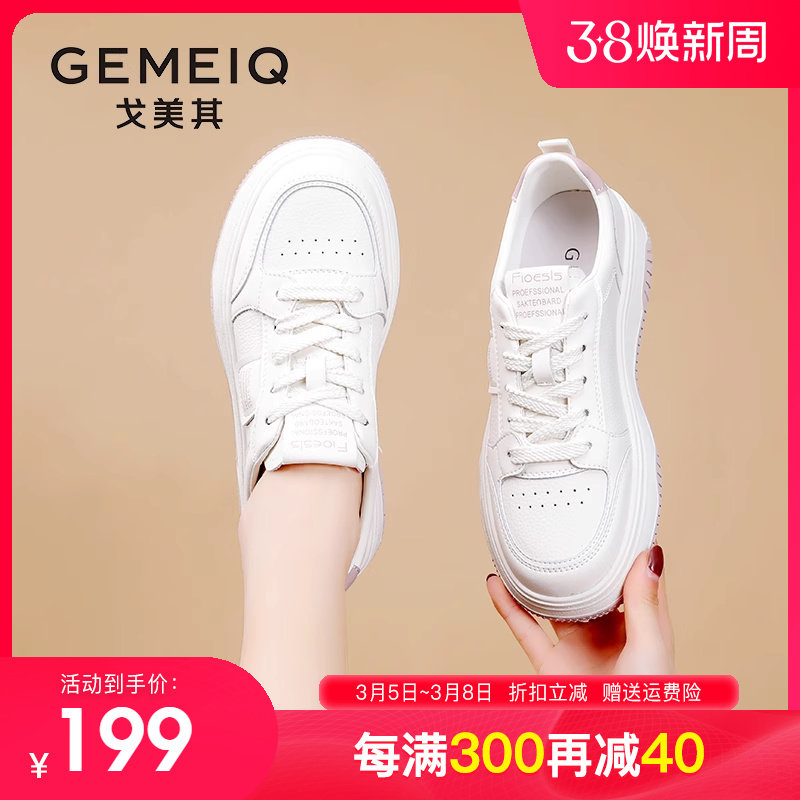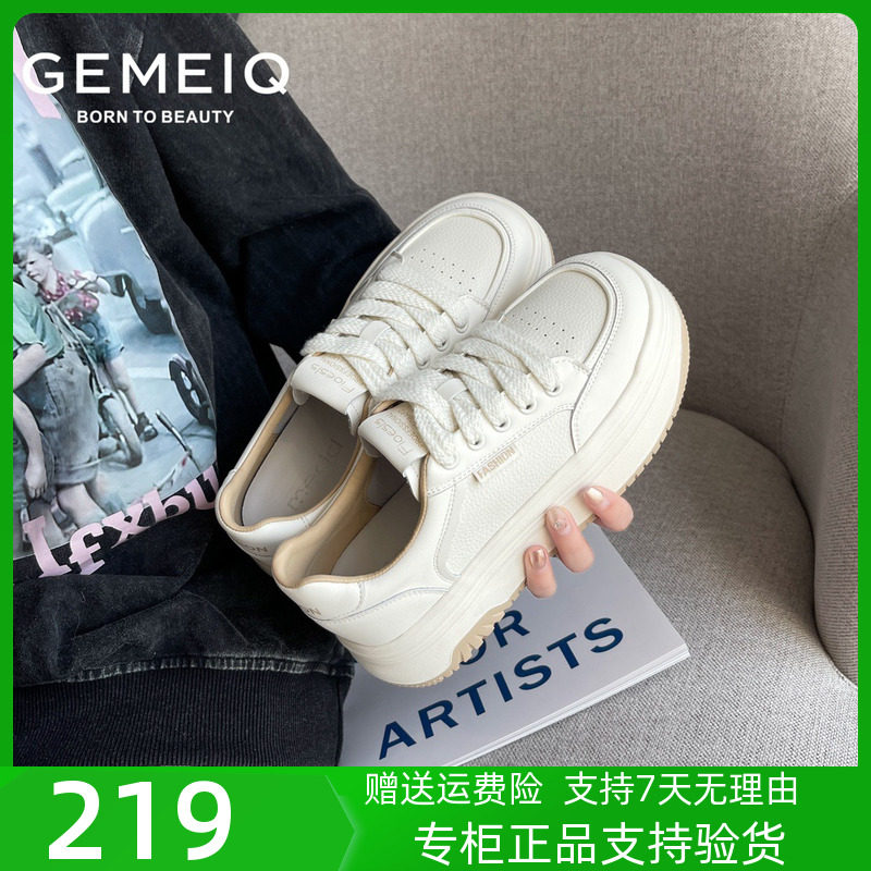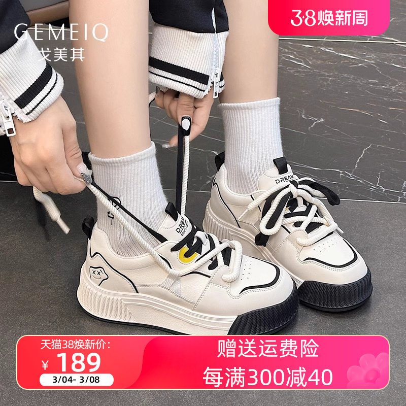 戈美其女鞋春秋新款运动休闲鞋女小白鞋真皮松糕板鞋真皮饼干鞋