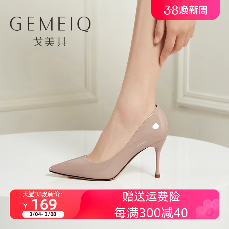 戈美其单鞋春秋女鞋法式气质百搭黑色裸色漆皮小个子高跟鞋不累脚