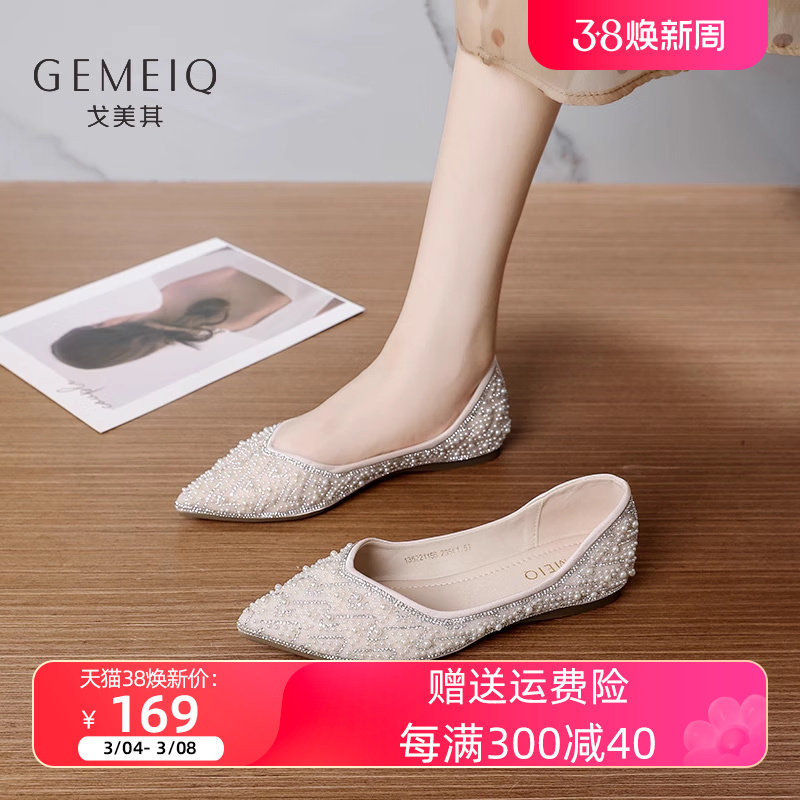 戈美其女鞋浅口休闲单鞋2023秋季新款百搭通勤平底平跟断码清仓鞋