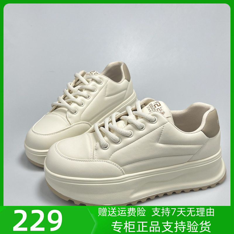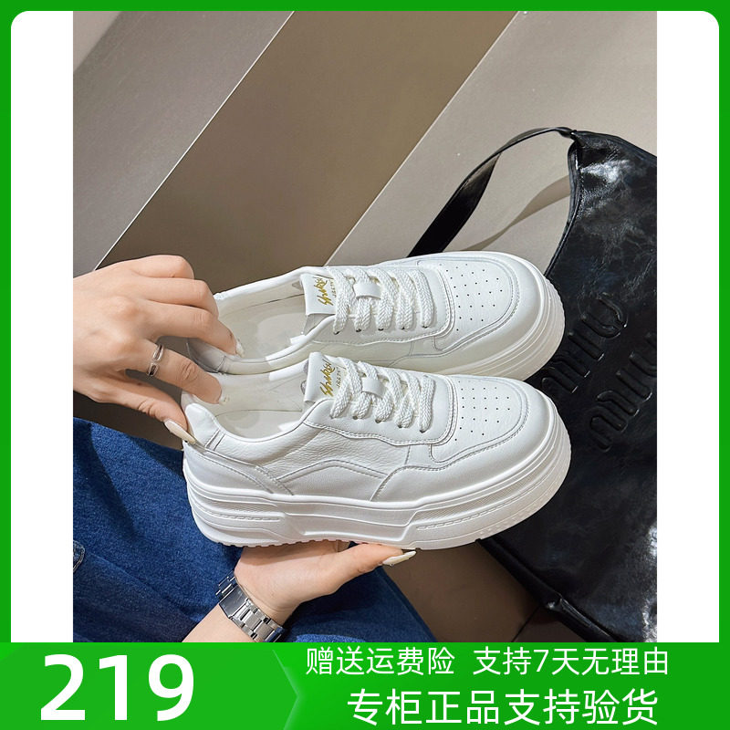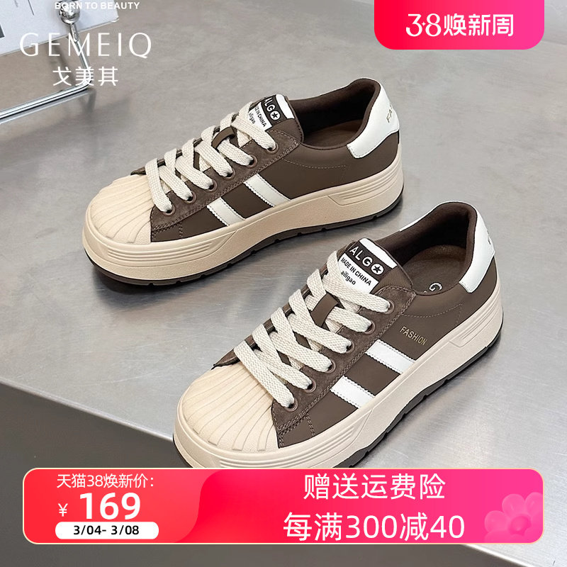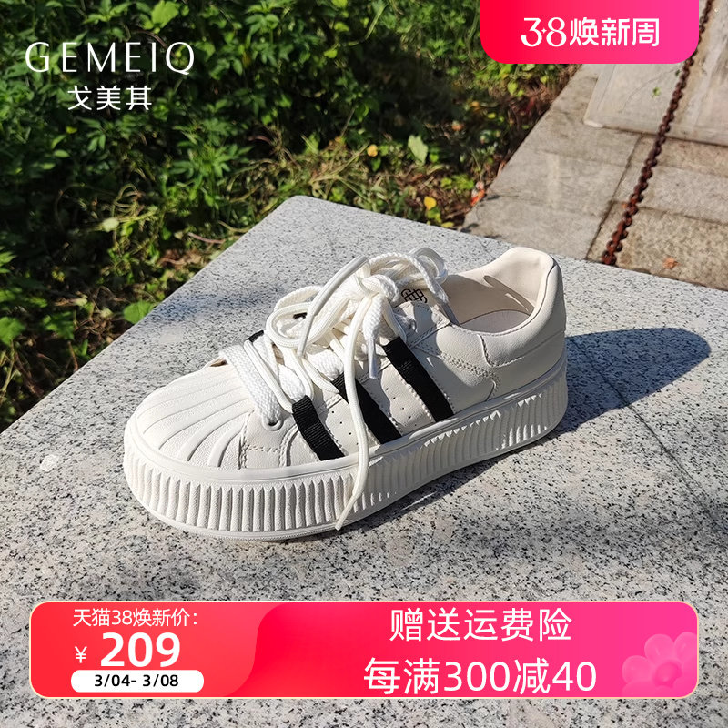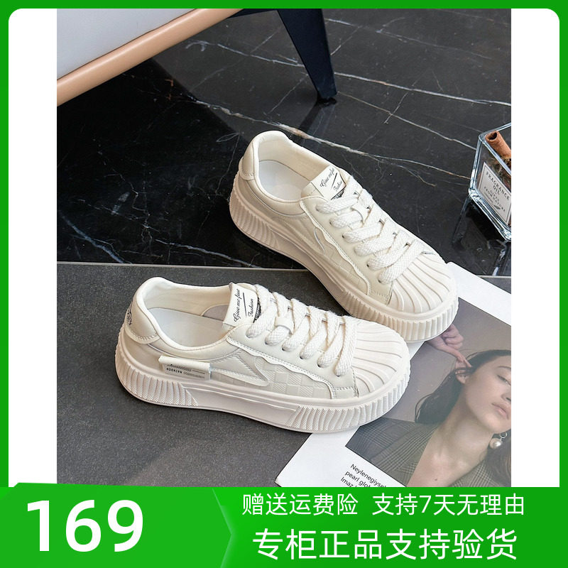 戈美其2023秋季新款女鞋厚底休闲小白鞋真皮百搭板鞋贝壳头饼干鞋