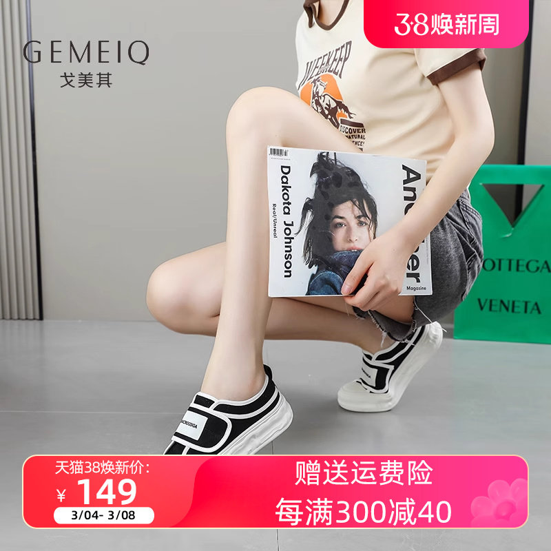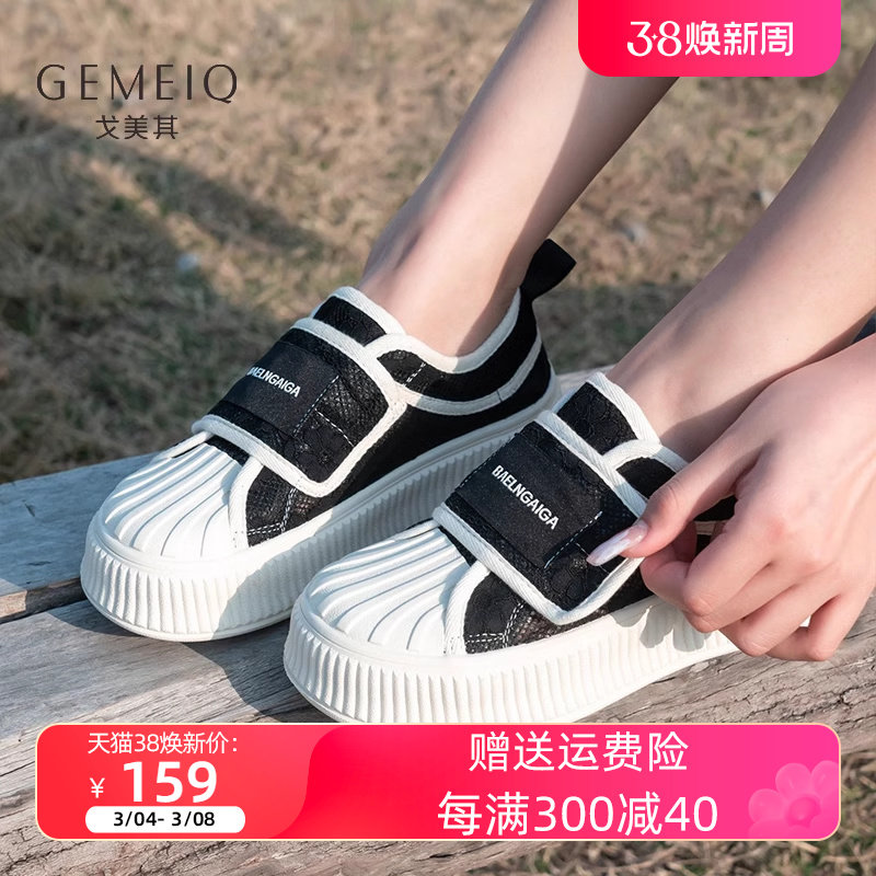 戈美其春魔术贴板鞋女鞋平底鞋休闲帆布鞋松糕单鞋厚底溶解鞋