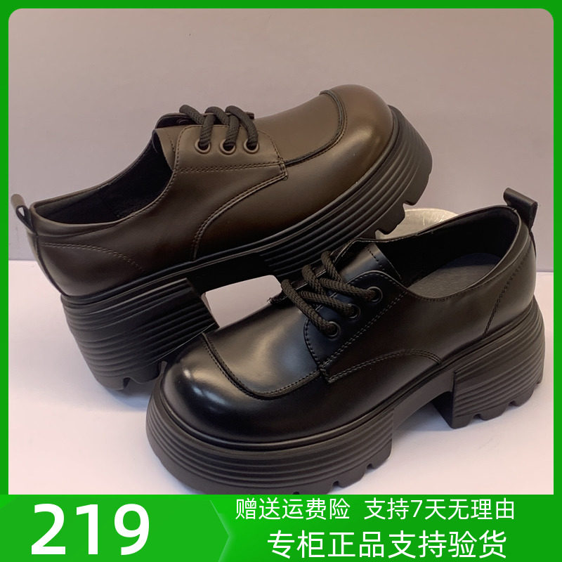 2024春戈美其乐福鞋厚底小皮鞋百搭增高女鞋系带棕色学院风单鞋