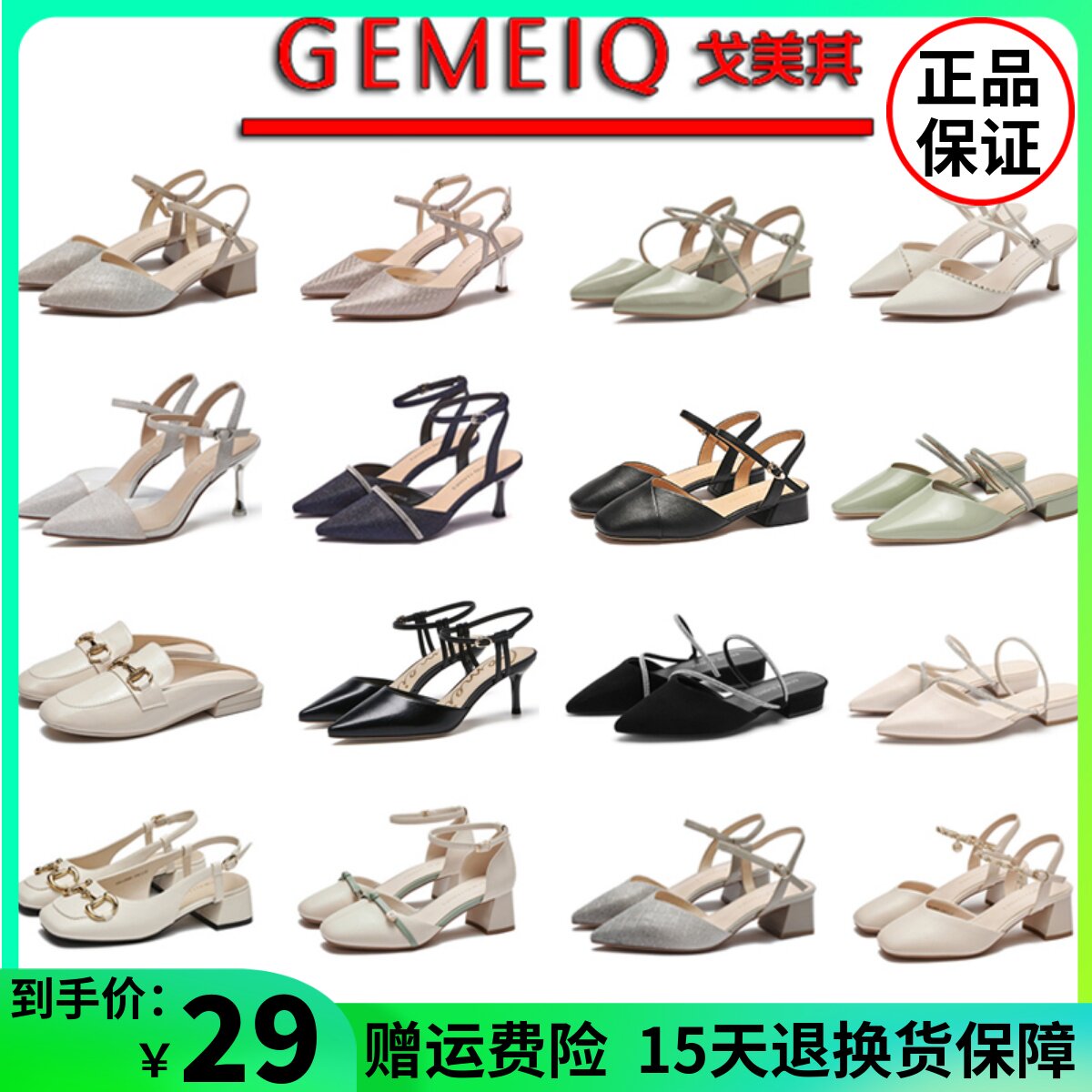 戈美其女鞋夏包头凉鞋2023新款粗跟细跟两穿断码清仓百搭时装凉鞋