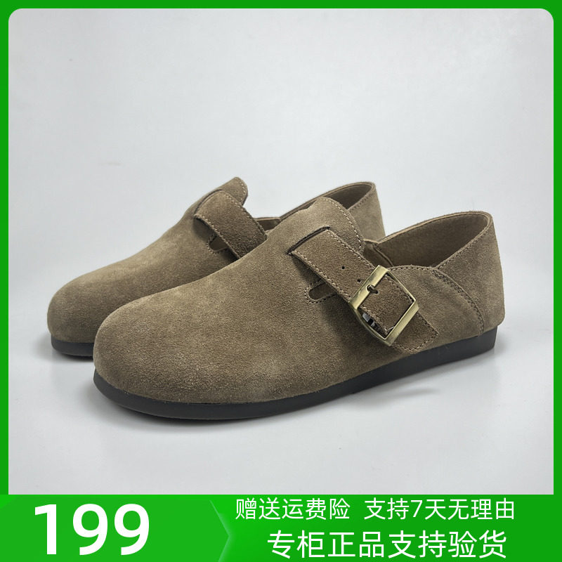 戈美其商场同款2024春季新款真皮牛反绒舒适百搭平底浅口单鞋女鞋