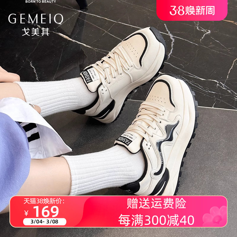 戈美其女鞋松糕厚底休闲女运动鞋ins潮真皮老爹鞋商场同款小白鞋