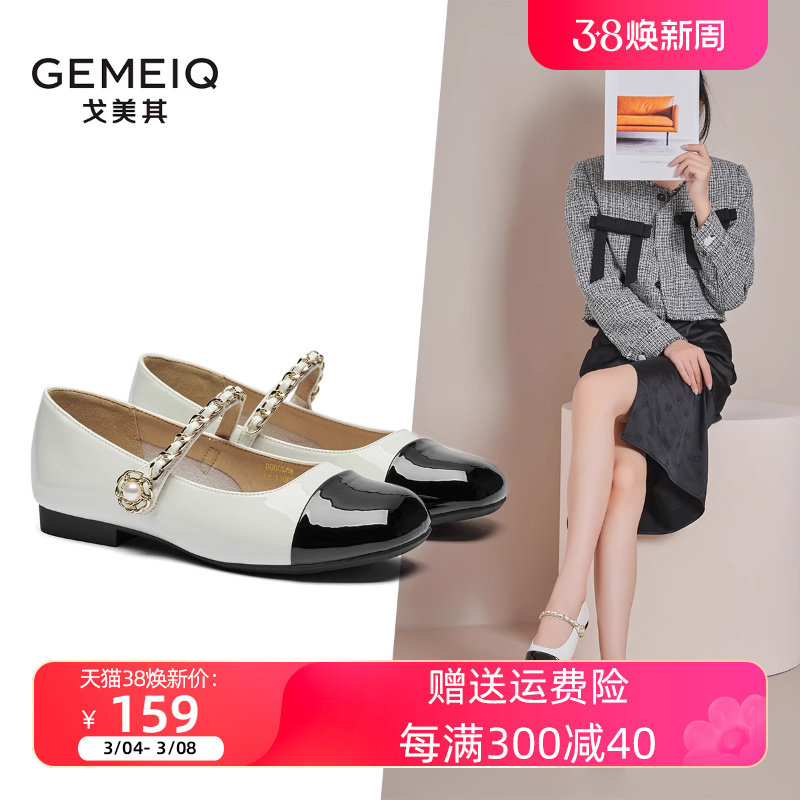 戈美其春秋新款女鞋法式轻奢小香风圆头珍珠玛丽珍女平底漆皮单鞋