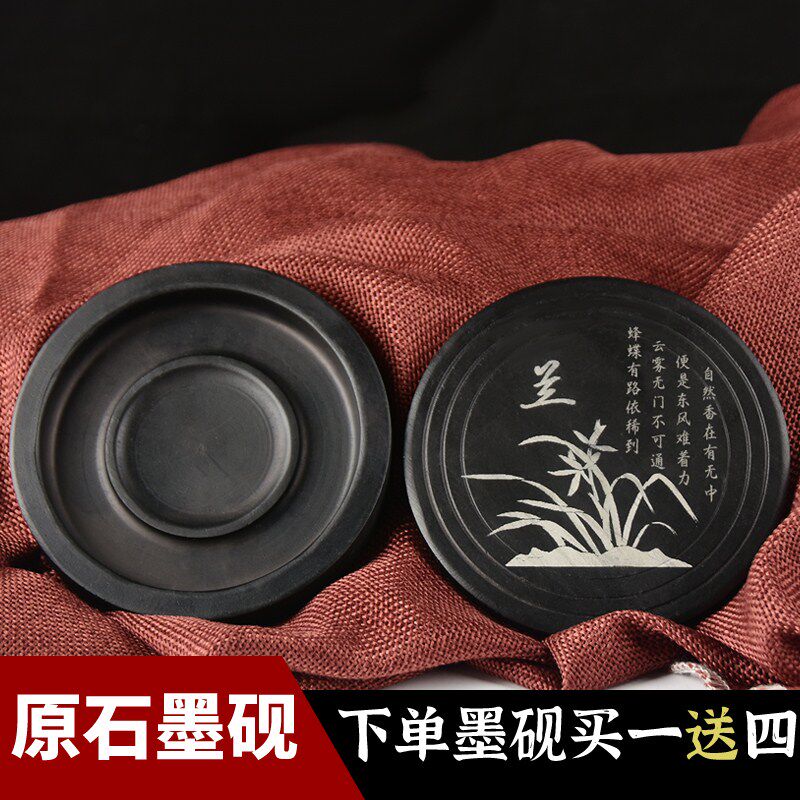 成竹堂砚台书法专用带盖密封原石天然清仓处理墨池墨盒墨盘墨盒可砚磨墨圆形文房四宝初学者用具小学生工具