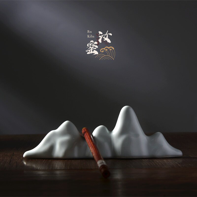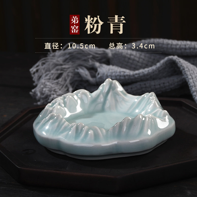 成竹堂汝窑富士山山形陶瓷砚台书法专用文房四宝墨蝶墨盘装墨汁墨