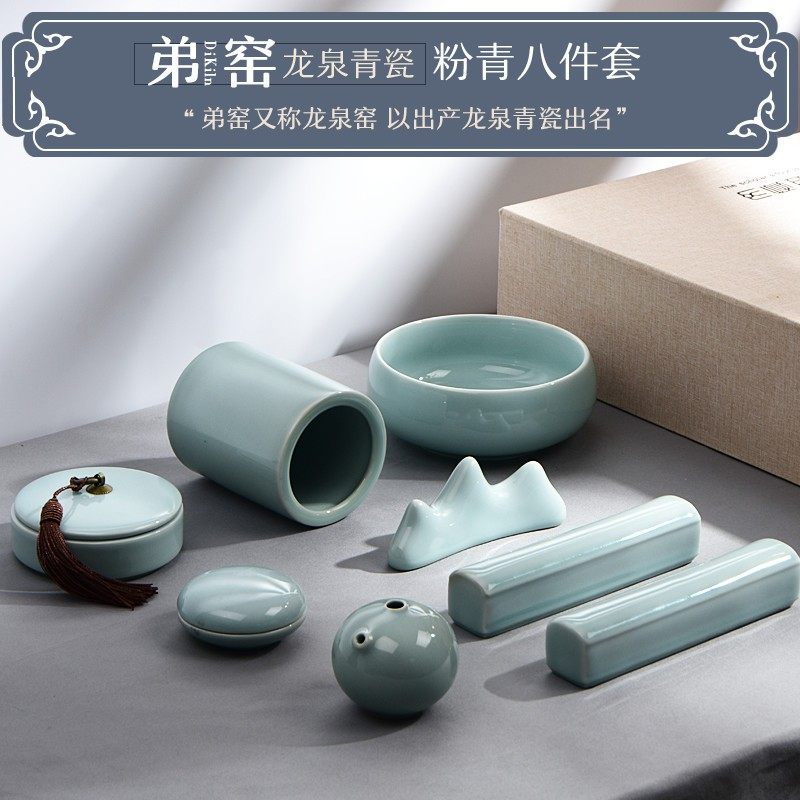 成竹堂陶瓷笔筒笔洗青瓷创意摆件文房四宝书法用品毛笔套装初学练