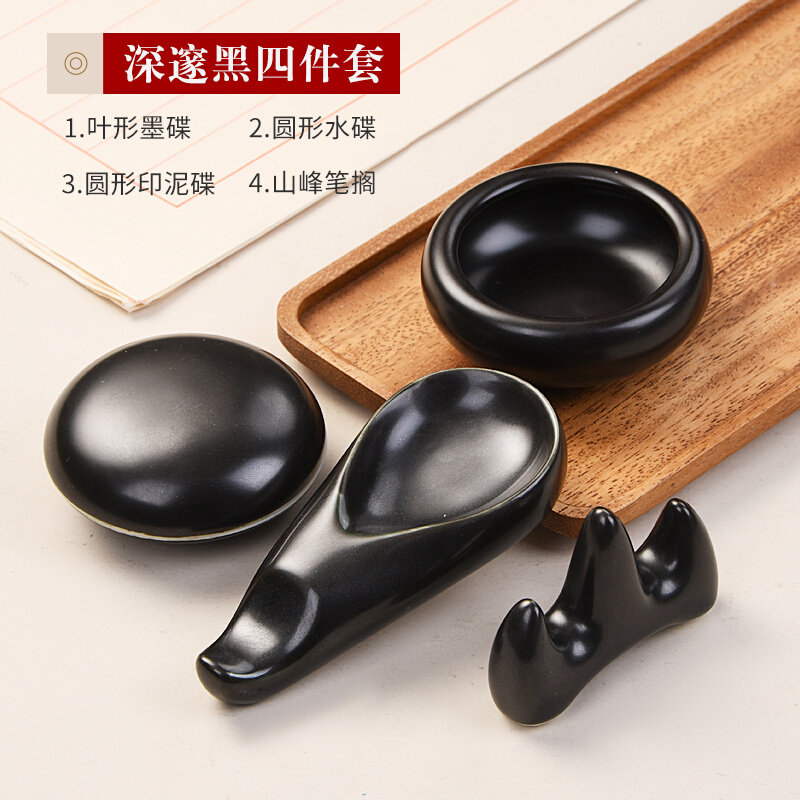 高档成竹堂陶瓷笔洗三件套大号文房四宝精品套装高档礼品装墨洗笔