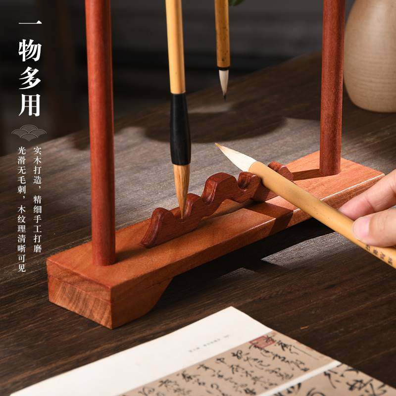 抖音成竹堂红木毛笔架笔挂笔托中国风复古笔搁笔山实木架子晾放笔