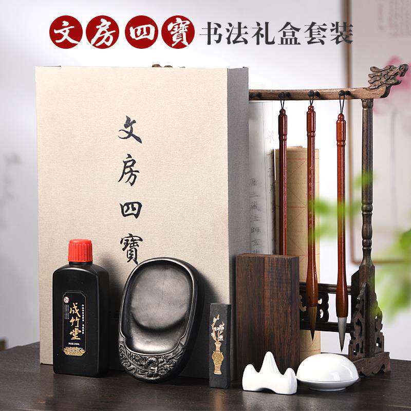 成竹堂文房四宝套装礼盒专业文房四宝毛笔架笔筒砚台镇尺字帖砚台