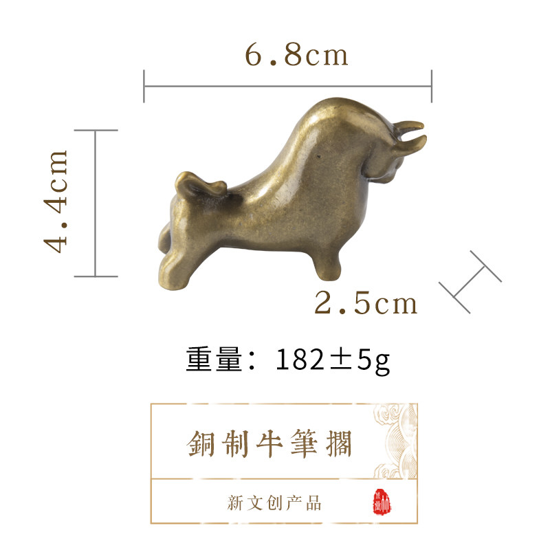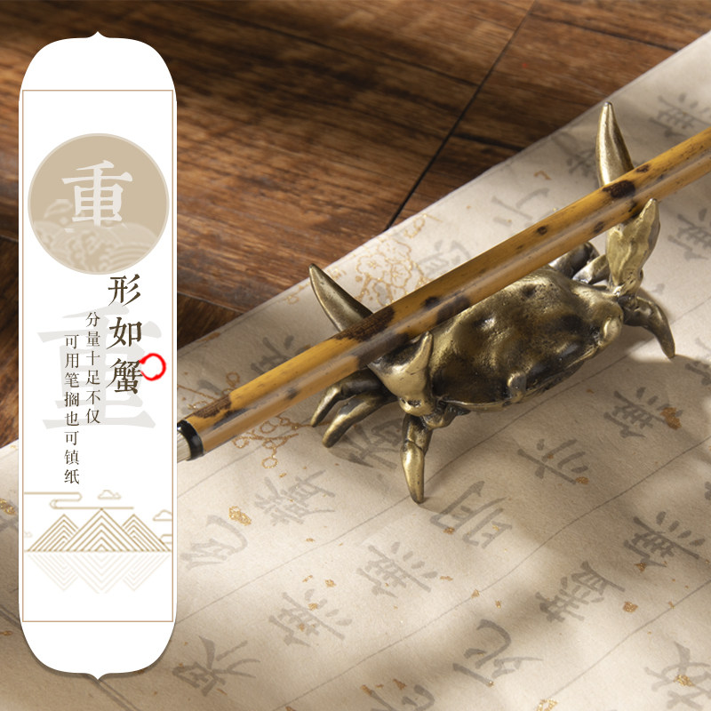 成竹堂高档纯铜镇纸镇尺创意多功能毛笔架铜笔搁纯铜尺纸镇书法压