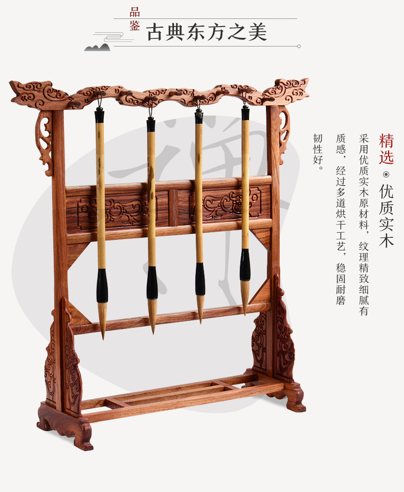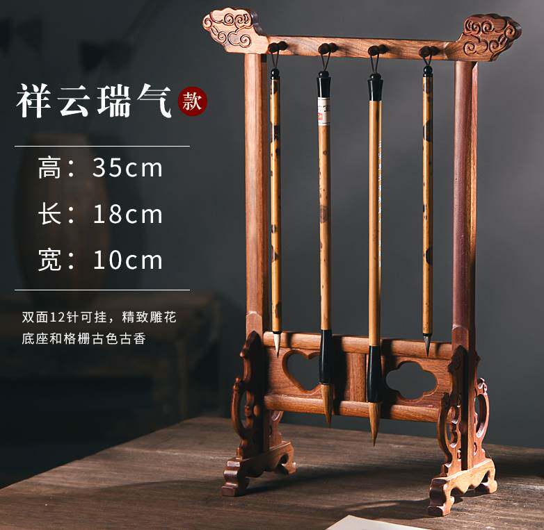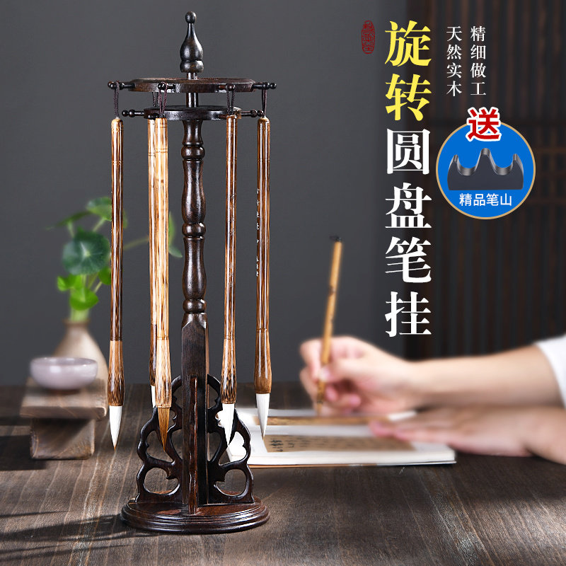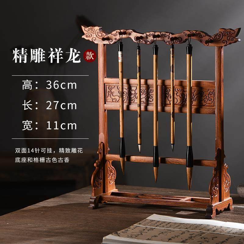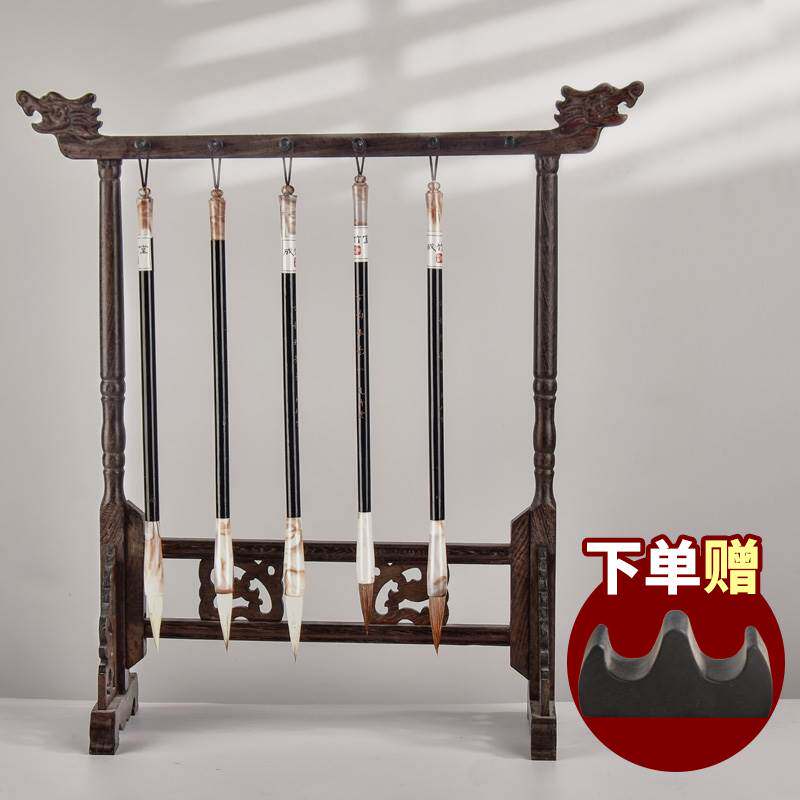 成竹堂5支毛笔架笔挂实木架子放笔架托挂架摆件装饰专用毛笔挂简约现代创意中国风复古笔搁龙头架挂文昌笔架