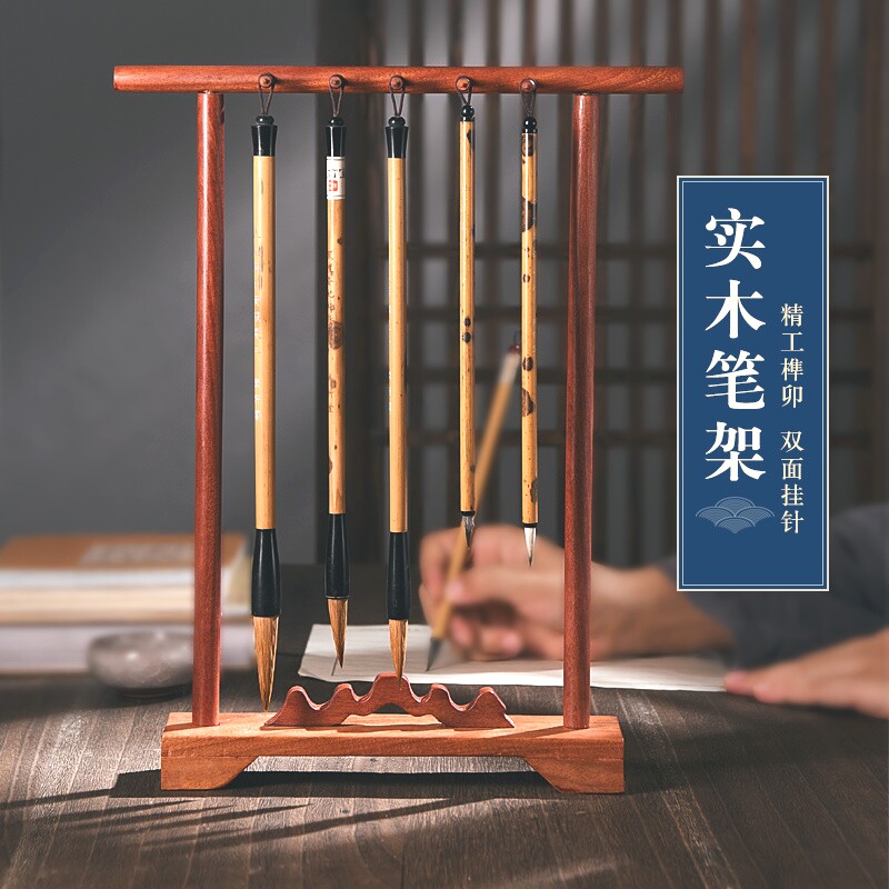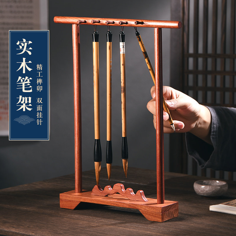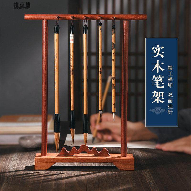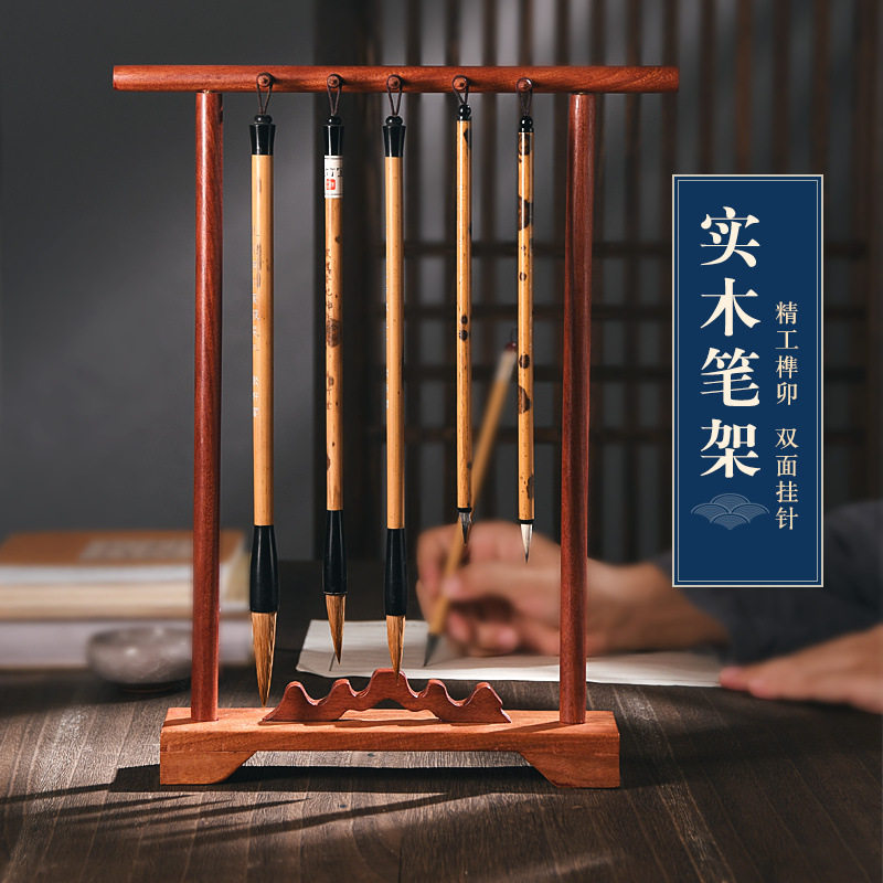 成竹堂5支毛笔架笔挂实木架子放笔架托挂架摆件装饰专用毛笔挂简