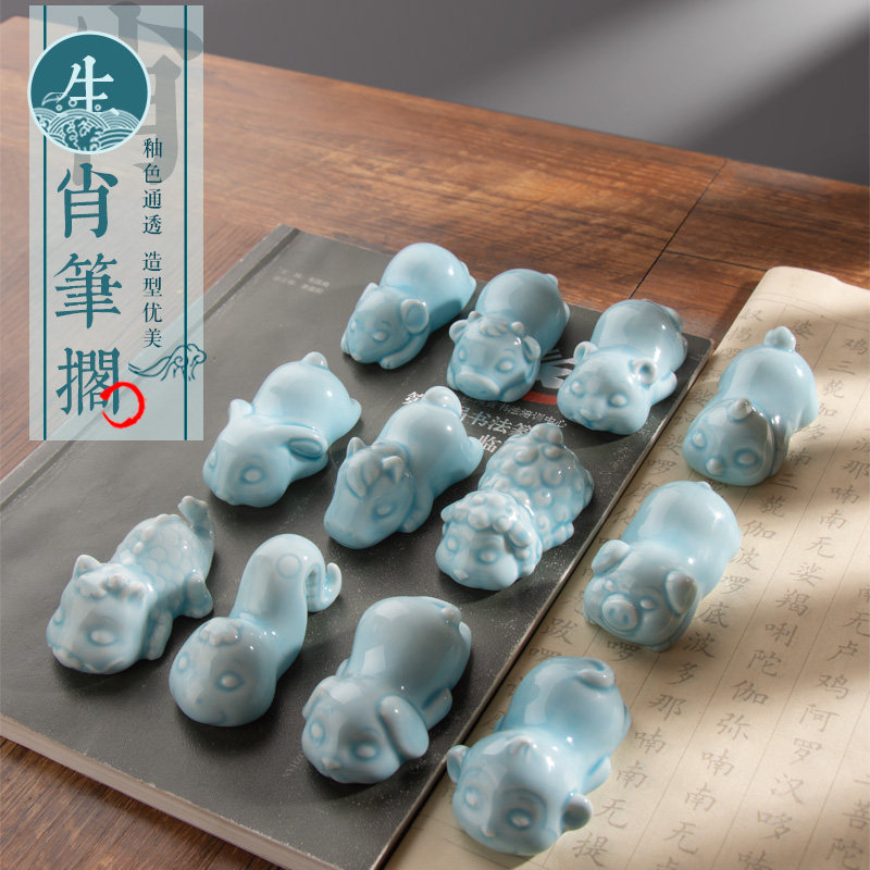 直销成竹堂12生肖迷你陶瓷小楷毛笔笔搁笔架可爱日式笔山中国风小