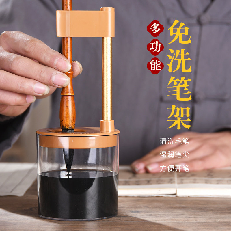 成竹堂多功能免洗笔架笔挂毛笔架学生初学笔筒洗笔筒笔搁洗笔神器