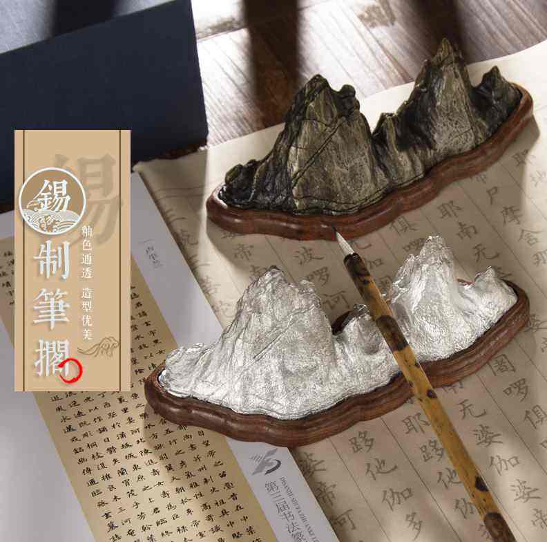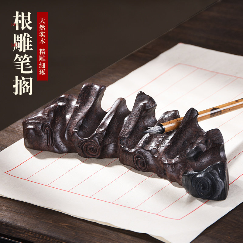 成竹堂大号实木笔搁放毛笔的笔山笔架笔挂多功能镇尺压纸中国风复