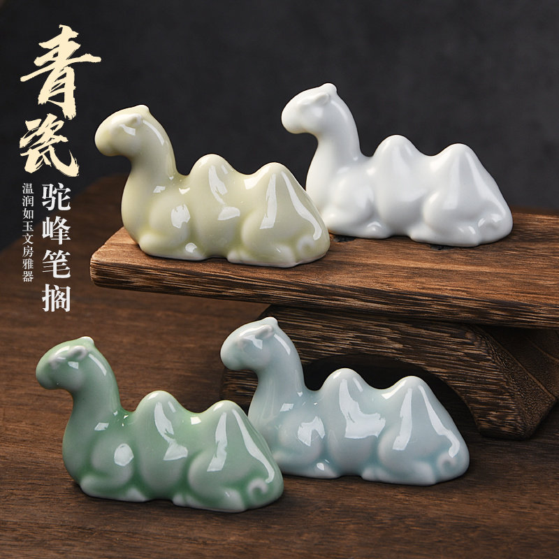 成竹堂陶瓷毛笔笔搁创意多功能古风迷你毛笔架写毛笔字置笔可爱简