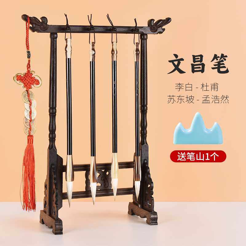成竹堂文昌笔架实木笔挂套装毛笔4支兼毫笔金榜题名学生礼品文房