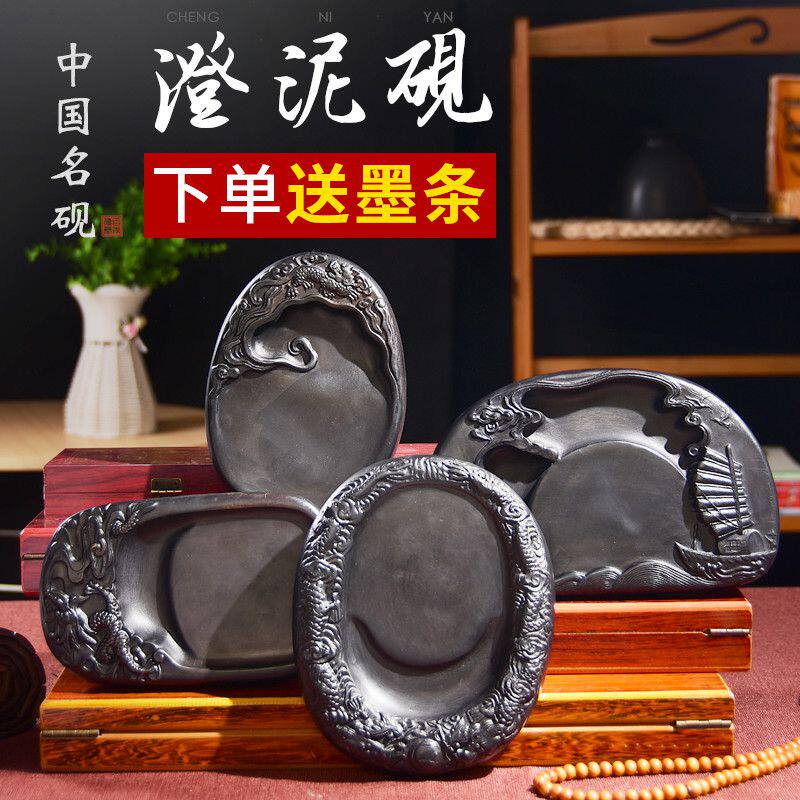 新品成竹堂砚台原石天然澄泥砚成人学生用墨池墨盘墨碟墨砚墨海墨
