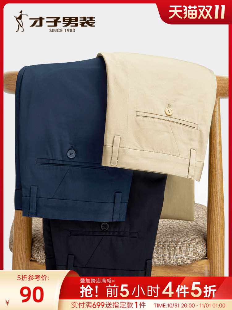 才子男装商务正装休闲裤男修身工装休闲长裤直筒弹力男士黑色裤子
